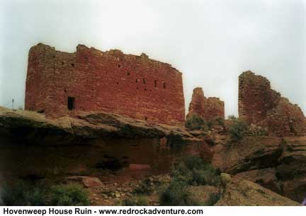 Winter is a great time to visit this area. It is high desert country and nights can be bone-chilling cold. But most winter days are sunny, with mild temperatures and conditions favorable for hiking and exploring. In ancient times, life at Hovenweep was simple, yet elegant. In these shallow canyons on the Cajon Mesa, they built a culture that beat to the rhythms of the natural cycles that surrounded them: the revolutions of the sun and moon, the harvest, the hunt. Their life has been described as "Eden lost," but it wasn't easy, nor was it as romantic as we sometimes imagine. At the height of summer, the desert sometimes swelters in a 110-degree fever of heat; on a cold night in deepest winter, it can be a frozen hell. Evidence of warfare and cannibalism add a dark twist to our conception of how these people lived. Some wonder how they could have survived here at all: "This guy took one look around and said: 'This is God's Country - and why in God's name would anyone live out here?'" relates Darby Bramble, a park ranger.