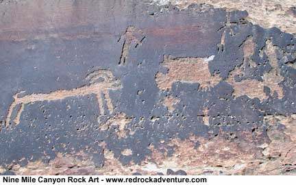 However, I'm glad there are places to see rock art close to the road. It keeps the riff raff away from the wilderness sites. I am a wilderness snob. My reluctance to encourage any of you to search for rock art is overcome by my desire to educate and agitate. We should protect more wilderness, so there is room for all us wilderness snobs to avoid each other. Backpacking means seeing the canyon the way the ancient native Americans saw the canyons; towering sandstone walls, with the juniper trees scattered across the rock. Deep in the canyon one can listen to the canyon wrens that inspired Kokopellis flute, drink from the same stream, and walk the same paths as they did. How else can one appreciate their lives and what they left behind. These people grew crops, built multi-story buildings, made baskets, pottery, and created a culture in a place with little rain and wild temperature extremes, even snow. To begin understanding one must sit alone in the ruins surrounded by pottery shards, corncobs, turkey feathers, bits of twine, flints and rock art. Finding rock art means trying to think like the Anasazi, the Fremont, the Sinagua, the Hohokom and all the others. The search keeps me focused on the canyon. My theory is that they picked places with the best views (lookouts for seeing the enemy). It is not foolproof. Just when I think I have it figured out, I climb up to a place, sure that there will be rock art, but there's none. The anticipation is great, the disappointment is real. Then again, if I found some every time there would be no mystery, no appreciation, no reason to explore, or think. The trick is to try as many potential sites as possible. One has to be willing to suffer through the tamarisk, the hackberry, and the willow that protect the images. The scratches are good souvenirs. Be careful of the cryptogenic soil, we need that black crust to protect the canyons. I have learned to resist the urge to take that one shard of pottery that no one will miss. It is always disappointing that no matter how remote the site, someone has come before and stolen artifacts. More is missing than just a pot or an arrowhead. The piece belongs to the place. It does more for the canyon than it would do for me or you. Instead I draw, write, photograph, sit and stare. I soak the place into my skin. Someday I'll find an undisturbed, unseen rock art site. Searching for rock art reminds me there are more questions than answers. What do they mean? How did they get them so high up? Who made them? Why did they make them? How many more were there? Were they made at the same time? How did they decide where to put them? Who were they drawn for? Was it a language, a religion, messages, or just doodling? In the canyons, the age of the earth becomes clearer. Viewing a corn cob takes me back hundreds of years. Their voices are still there. Looking at streaks carved in the cliffs takes me back through millions of years of wind and water. I realize when my time human time ends, the canyon will not. The Anasazi did not imagine us, we cannot imagine what will come after us. We are not at the end of time, we are in the middle perhaps even the beginning. We are witness to a split second in the canyons life, frozen in rock, for now but not forever. I sit at a panel of bighorn sheep and look out over a canyon. In the canyon's life span I just missed meeting my ancient friend. We share the view of a canyon. It is up to us to ensure that the view remains. The creators of the rock art left behind a legacy. Our legacy should be a canyon protected as a wilderness. Copyright Dave Webb, 2005 |