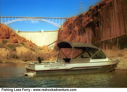 Trout often pick it up as it falls. Sometimes they hit it hard but often they just stop the jig, making it difficult to detect a strike. Watch your line. And be alert to any light tick on your rod. My first fish was an 18-inch rainbow. A beautiful fish, although Jeff said it wasn't as fat as most coming from the river. Then I picked up a 13 incher, and then a 17 incher. Now my blood wee flowing and I felt great. And then the sun came out. So we stowed the spinning rode and went back to fly fishing Fly fishing was tough that day, even in the sunshine. A few people were picking up fish on the gravel bars, using scuds on the bottom or an Irresistible on top. Some also had success using tiny midge patterns. The water flow in the canyon varies hour by hour, and that has a profound effect on fishing. The dam was constructed to generate hydroelectricity, and the flow is regulated by power needs. In the morning, when businesses are coming alive, a lot of water needs to be pushed through the turbines. The river level rises, flooding gravel bars and sweeping food downstream. Fish often go on a feed as the water rises. As power use peaks and then tapers off, the water level drops. Fishing is tough when the water is dropping as it was by the time Jeff and I got serious about fly fishing. We powered upstream, Jeff studying the river. Suddenly he pulled up short and said he could see fish feeding on the surface along the edge of a pool. It took me a minute but then I saw them, mouths poking up through a line of foam. We eased the boat over. Fish darted for cover as we approached. But we anchored and sat quietly and they soon came back. There must have been a dozen or more, hanging just under the surface. Now and then they would glide up and pick something out of the foam. We tried pattern after pattern but those fish wouldn't even look twice. We placed flies within inches of feeding fish, and they showed no interest at all. Finally Jeff tied on a number 20 pheasant tail, put a small split shot about a foot in front, cast up above the fish and let it drift down to them. When the nymph was in the pool he controlled it with tiny strips only about an inch at a time. That worked. A 12-inch rainbow took the nymph and battled valiant as Jeff played it to the boat. He was the only taker. I don't know what those fish were eating but we sure couldn't match it. It's a frustrating experience to see fish feeding all around you and not be able to coax a bite. It happens to me now and then, and I was tickled to see it happen to a professional guide. Finally we gave up. On a whim, as Jeff was cranking up the engine, I grabbed a spinning rod and threw out one of those orange marabou jigs. I kept it near the surface as I pulled it through the feeding fish. Wham! An 11 incher hit hard and hooked itself. I cast a couple more times and caught a 13-incher. By that time Jeff had the boat ready and we went upstream to try scuds again before calling it a day. Fishing at Lees Ferry is restricted to artificial flies and lures only, and only barbless hooks are allowed. Its catch and release fishing. Ok, the rules say you can keep 4 fish under 12 inches in length, but nobody does. A guide really does help insure a successful trip. "I like taking people out and helping them do things they have never done before," Jeff said. "I know I'll never get rich in this business, but I do all right. I've had doctors, lawyers and CEOs tell me they would give anything to do what I do." Spring and fall are ideal times at Lees Ferry because the weather is usually great. Most winter days are pleasant but it can be cold and stormy. The air temperature gets hot in the summer, but the water is always cold and fishing is usually very good. "We fish 365 days a year," Jeff said. Weekends and holidays book up fast, particularly in the spring. If you call a few weeks in advance you can usually schedule a trip. You need an Arizona license to fish Lees Ferry. I was raised in the St. George area and I love the red-rock country of southern Utah and northern Arizona. Fishing Lees Ferry is a unique experience I don't know of any other place on earth where you have such good fishing in such a spectacular rugged desert setting. Besides the fishing and scenery, I wanted to visit the area for personal reasons. The ferry was established by a man named John D. Lee, one of the more colorful Utah pioneer leaders. I happen to be a direct descendant by one of his many wives, Mary Leah Groves. It was fun to see where he lived during a difficult stage in his life. For more information: Arizona Game & Fish Department: www.gf.state.az.us Lees Ferry Anglers: www.leesferry.com, 1-800-962-9755 Lees Ferry Lodge: www.leesferrylodge.com, (800) 451-2231 Copyright Dave Webb, 2005 |
