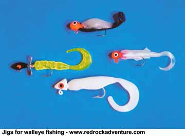 Spring Walleye Behavior As the days lengthen and the temperatures warm in February, walleye begin to think more and more about spawning. Both males and females will begin to migrate to traditional spawning areas. The males will arrive first and stay the longest. By early March, male walleye will begin arriving at spawning sites in the Inlet Channel and along the West and North dikes. By mid-March, spawning will begin and it will continue for a couple weeks. The males will stay in the spawning areas while females will come and go, as they are ready to lay their eggs. A 10-pound female may lay 500,000 eggs each spring. Eggs hatch in 12-18 days and within another two weeks the young walleye will have dispersed into the open water of the lake. When, where to find March walleye The best catches of walleye at Willard Bay in March are made by concentrating your fishing efforts from late afternoon through the night and into early morning. Spawning typically occurs at night so that's when the fish are in along shore and are most active. Focus your efforts from sunset into the night and pre-dawn to early morning. Spring fishing success is highly variable. Fish as often as you can to make sure you hit those few good days. Some of the best fishing may occur just before storms and during the full moon.Concentrate your effort around the mouth of the South Marina (the inlet channel is closed to fishing in March) and along the West and North dikes. The walleye will be right in along the rocks. They may be in only a few inches of water right next to shore or down several feet. Walleye will not be uniformly distributed in these areas and may move in and out from day to day. Walleye tend to congregate in small areas and once a good spot is found it may stay good all through that spawning season. The next spring they'll probably not be in the exact same location. Along the dikes, whether fishing from shore or a boat, just pick a spot and start fishing. This is probably the best time of year to fish from shore because the fish are in along the rocks and often shallow. At times it seems that fishing is actually better for shore anglers than boat anglers. The fish seem to hit jigs coming into shore better than jigs being pulled away from shore. I know boat owners who regularly fish from shore this time of year at Willard Bay. Work along the dike fan-casting to cover as much area as you can from your location and then move to where you are covering new water. Move slowly and quietly. Banging rocks together or making a lot of noise will spook shallow fish. Once you get a hit or catch a fish, work that area for several minutes to see if there are other active fish in the area. Then slowly move on, casting to locate more fish. Most of the fish this time of year will be taken by casting 1/8-1/2 ounce jigs. Lightweight jigs work best in light wind conditions and shallower water. If the wind is blowing or the fish are deep then use a heavier jig. White, yellow or shad-colored jigs seem to work the best. The best jig body size seems to be about three inches. Curly- or paddle-tailed jigs provide good action and send off a vibration that walleye can key in on as you crank the jig slowly through the water. I have found that cranking the jig just fast enough to keep it close to the bottom but up out of the rocks works better than hopping in along the bottom. Vary speed and depth of presentation until you find what is working that day. Use a 6 or 6-1/2 foot medium action spinning rod. I like to use 6-8 pound monofilament line. Tie the jig directly to the line. Don't use a swivel or snap to attach the jig as this will affect the action of the jig and the way it travels through the water. At times, walleye can be very aggressive and will hit your jig hard. At other times you'll only feel a slightly heavier sensation as you pull the jig through the water. The best way to demonstrate this subtle bite is to cut a rubber band and hold one end in each hand. As you just barely begin to stretch the rubber band you will feel a slight pull in the other hand. This is a typical walleye bite on a jig. If your line moves funny or you feel anything unusual, set the hook immediately. Most of us have many more bites than we ever know. Fish can swim along at the same speed as your lure and completely inhale it and spit it out without anglers ever knowing they had a bite. One way to increase your odds of hooking a fish as it spits out your jig is to slightly bend open the gap of the hook. Use a pair of pliers and just open the gap a little by pulling the point out away from the shaft of the hook. Grab the hook behind the barb. Don't grab the point or barb of the hook. You only have to bend it about 1/16 of an inch. By doing this the point won't be exactly parallel to the shaft of the hook and can more easily snag the inside of the fishes mouth as it tries to spit it out. When it feels the pick of the hook it will jerk to get away and many times will set the hook itself, or you'll feel the fish and set the hook. Check your hooks often. When casting around these rocks it's very easy to dull or bend the point of the hook. Carry a small hook sharpener and keep those hooks razor sharp. Spring walleye fishing at Willard Bay is pretty simple. Follow these few tips and tricks, keep your jig in the water and you'll catch some March walleye at Willard Bay. Copyright Dave Webb, 2005 |