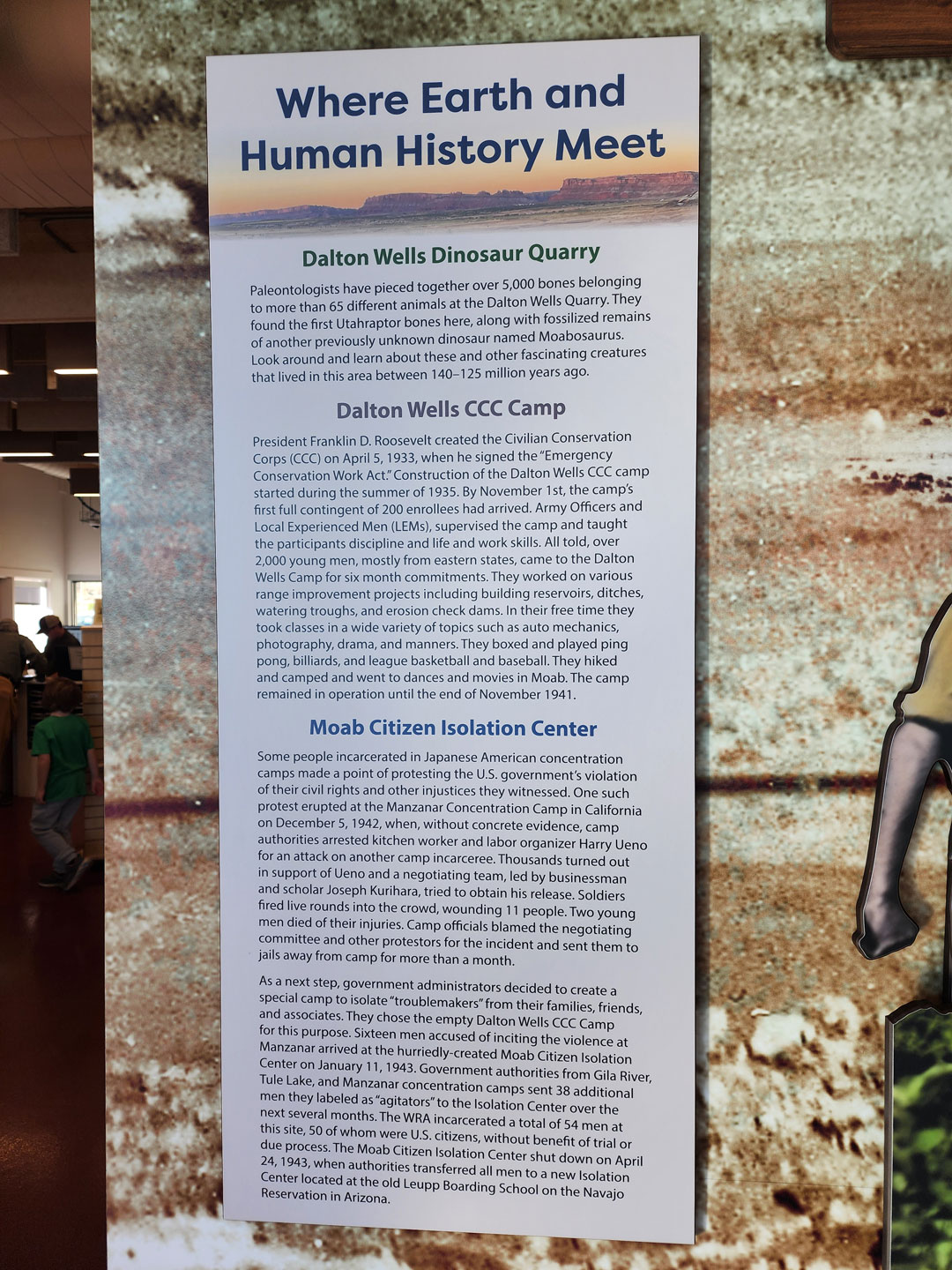 We know that there are many places near Moab where you can see dinosaur tracks, and that fossils have been found nearby. But we had no idea of the importance of the Dalton Wells Quarry. The quarry is no longer active, and there is not much for visitors to see at the site, but its history is fascinating.