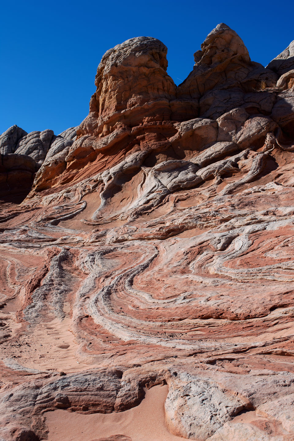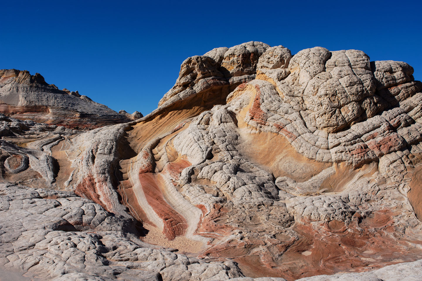 White Pocket is taffy candy, swirled, folded and blended into rock. The rock strata and banding are amazing. It is a very scenic area located in Arazona's Paria Canyon area, just south of the Utah border.
