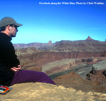 This happy fact is due in large part to Canyonlands' inaccessibility. Two great rivers flow together at its heart, and the arterial erosion of the canyons and gorges draining into this living, beating heart has shaped and carved a land as rugged and difficult to span as any other in the lower 48. We're talking mile upon endless mile of multicolored slickrock like umber skin stretched to the breaking over knobby, jutting ribs and spines and bones of rock, over the very skeleton of the earth. Access roads skirt the borders of this impossible landscape but only suspension-slamming, axle-grinding, virtually impassable 4WD tracks cut into its depths. Most people content themselves with driving to one of the many overlooks about the edges, taking a peek over the brink, then hightailing it back to Moab before the Back of Beyond bookstore closes, where they buy the latest Tom Till coffee table book and call it good. This is too bad, because many of Canyonlands' most enchanting features, its secret arches and hidden alcoves, its hanging gardens and trickling seeps, its stunning ruins and haunting petroglyphs, are hidden away down there, down in the deeps, tucked into and under and between the twisting corridors of stone.