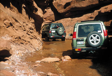 Others involved in our caravan that morning included David and Debbie Croshaw, of Pocatello, Idaho, driving a stout Discovery Series II; Jennifer Rigby, a Salt Lake patent attorney, also in a Disco II; Robert Wilhite, a Land Rover market manager out of Seattle, with his dog, Lindsey, in a top-of-the-line Freelander HSE; Bob’s son-in-law and wife in a Discovery; and a tech from the Centerville dealership getting in some field time behind the wheel of a Freelander.