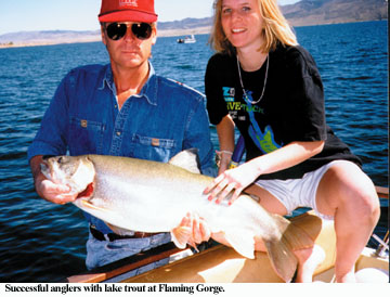 A popular maxim has it that 100 hours of fishing are required for each trophy laker. Don’t you believe it. If your heart is set on landing one of the Gorge’s monsters, it only requires some patience and a willingness to get into your wallet. Like any other body of water, Flaming Gorge has large areas of unproductive water, or at least water where no self-respecting lake trout will live. Conversely there are much smaller areas that provide perfect laker habitat — a healthy population of forage, holding areas and ample ambush points. Your challenge is to find these relatively small areas in a huge lake, locate the fish in them and offer just the right bait with the right presentation at the appropriate time.