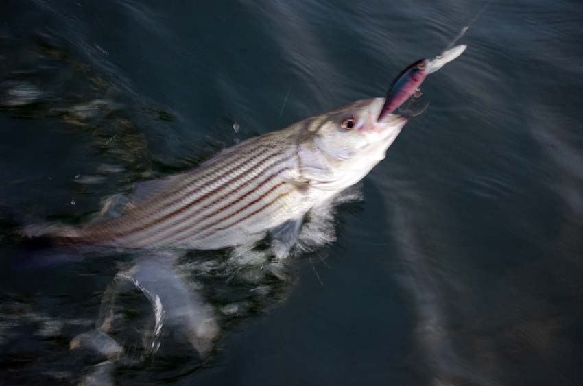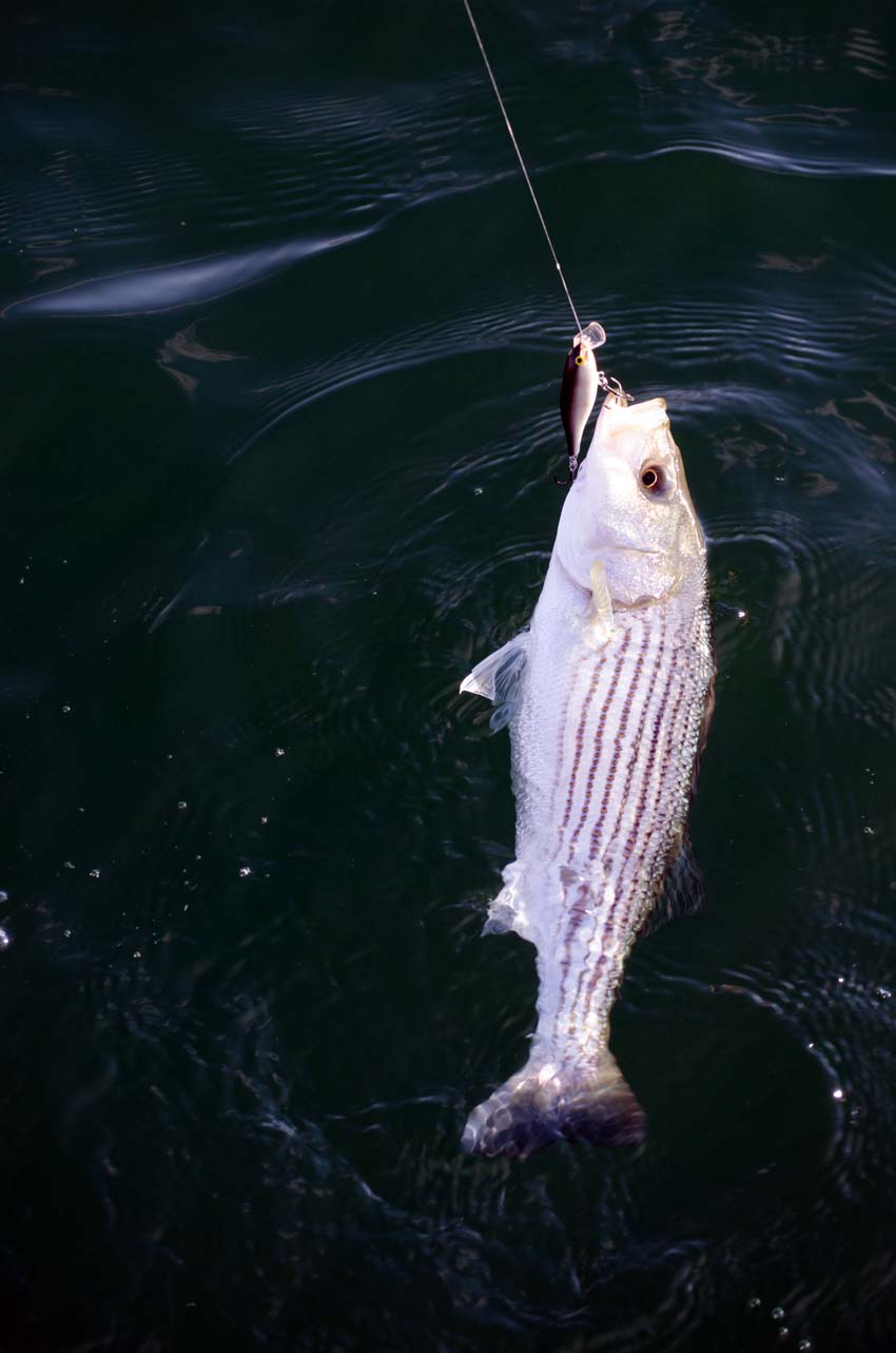 I find that lure color is not critical. Anything that remotely resembles a shad will do. Silver, gray and black are all productive.