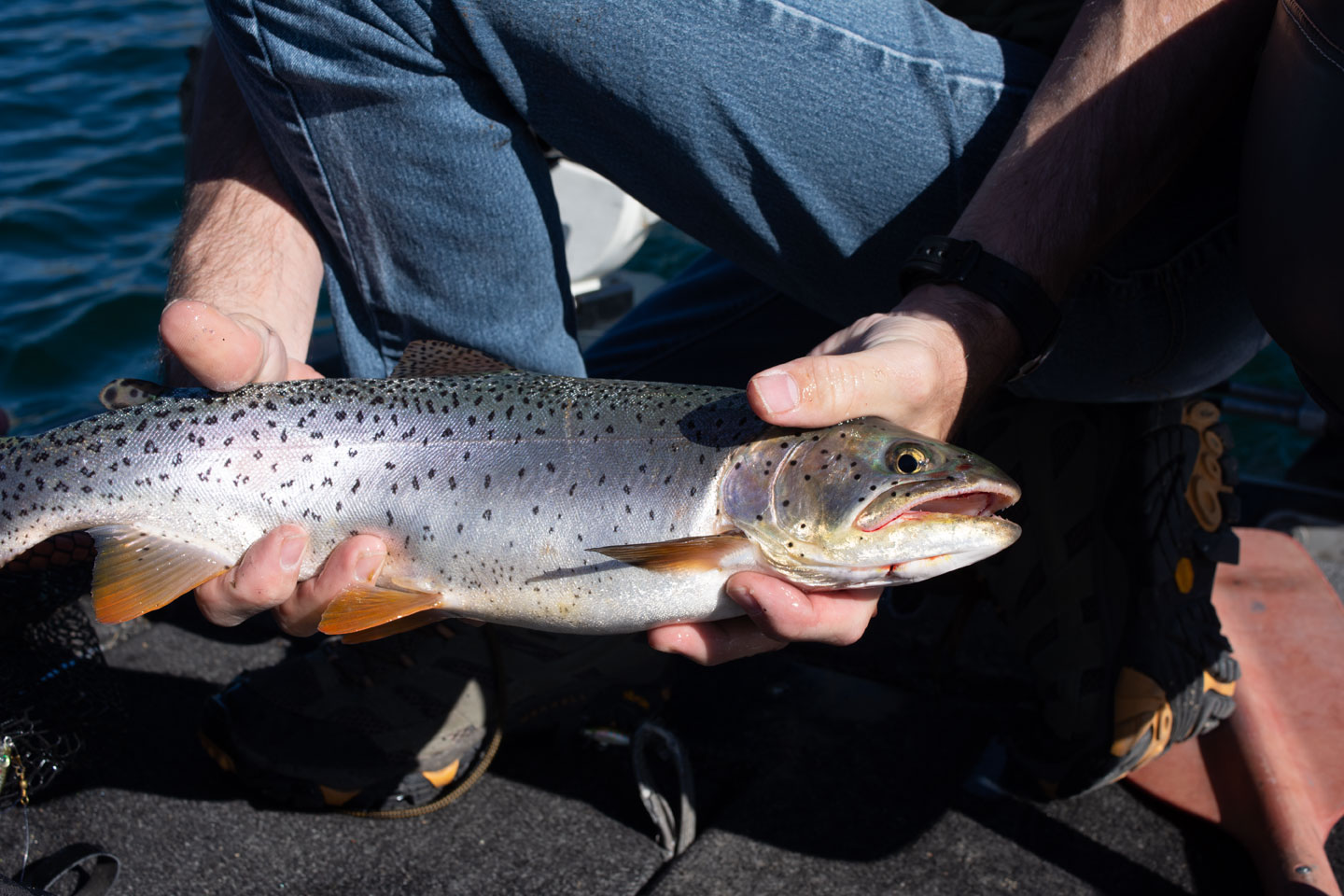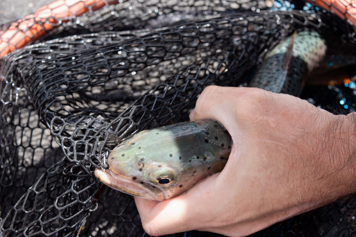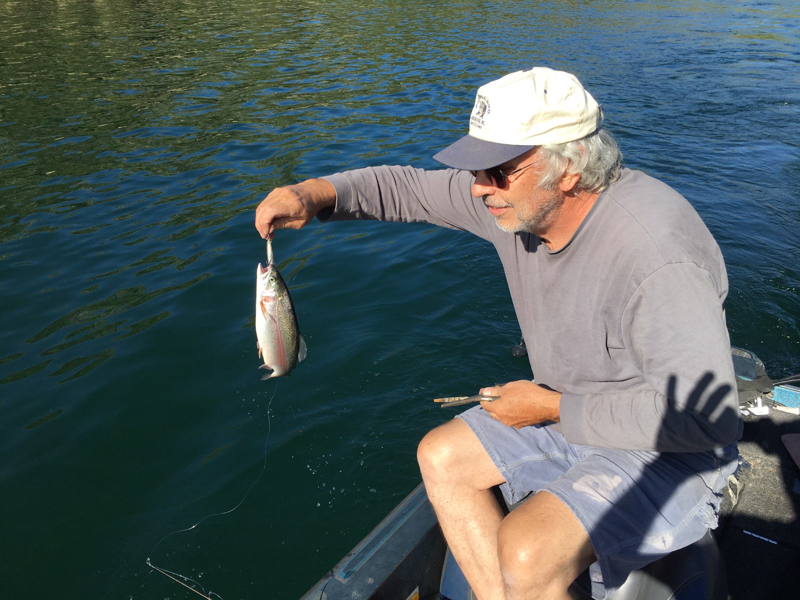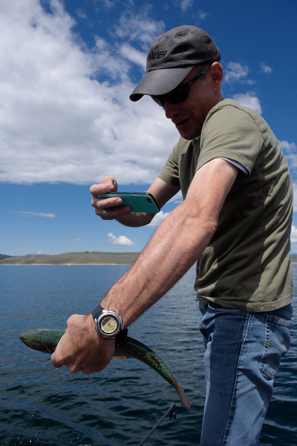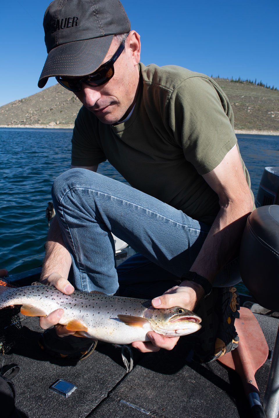 We had fun catching big, heathy, fat cutthroat during the morning and early afternoon. We also caught one smaller rainbow. Was nice to get up where the air was cool and the hills green. The fishing was steady; not red hot but we caught something every few minutes, mostly on lures fished deep.