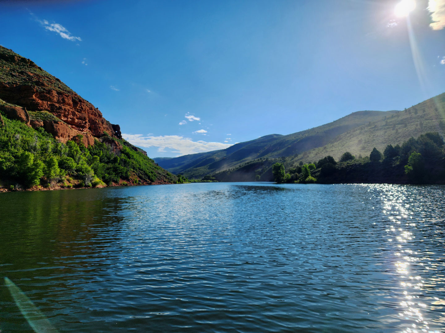 We launched at about 7:30 am and the air temp was 45 F. Nice, considering the sweltering temps found along the Wasatch Front. By noon the sun felt hot and we were slathering on sunscreen.