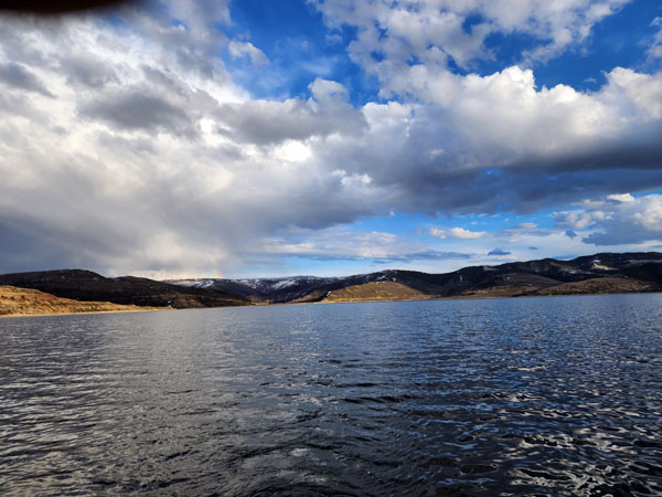 There was considerable snow on nearby mountain slopes but the area around the lake was mostly snow-free. However, there were deep drifts in spots on the access road to Solder Creek Marina. They had plowed one lane through the drifts and it was no problem pulling a boat into the marina.