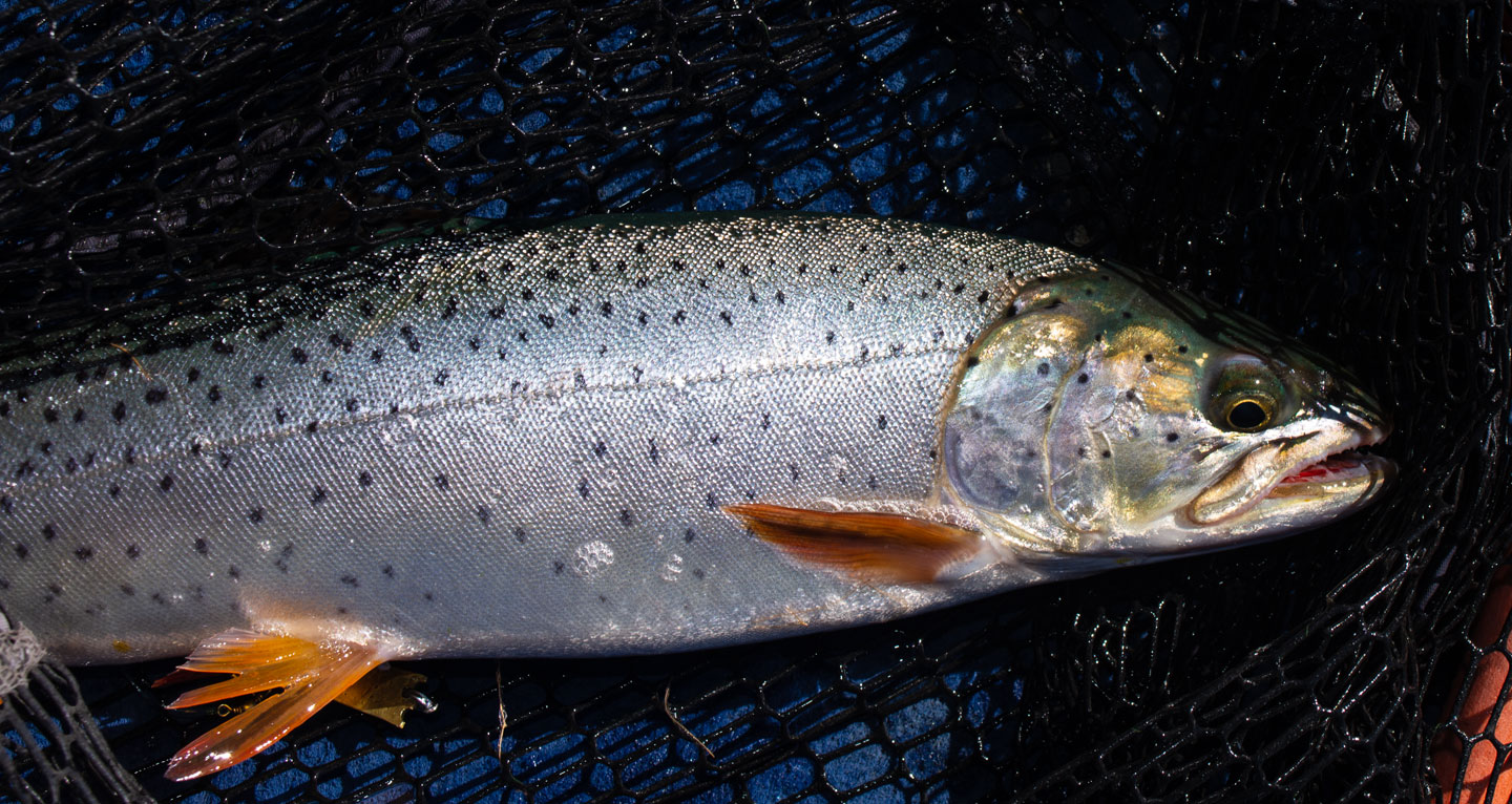 Fish have definitely noticed the change in seasons and are settling into a fall pattern. Water temperatures are falling, and that means active trout may be found in relatively shallow water where they are easy to reach without specialized gear. We caught rainbows and cutthroats near the surface and down 10 feet or so. We also graphed fish deeper, but didn't target them this trip.