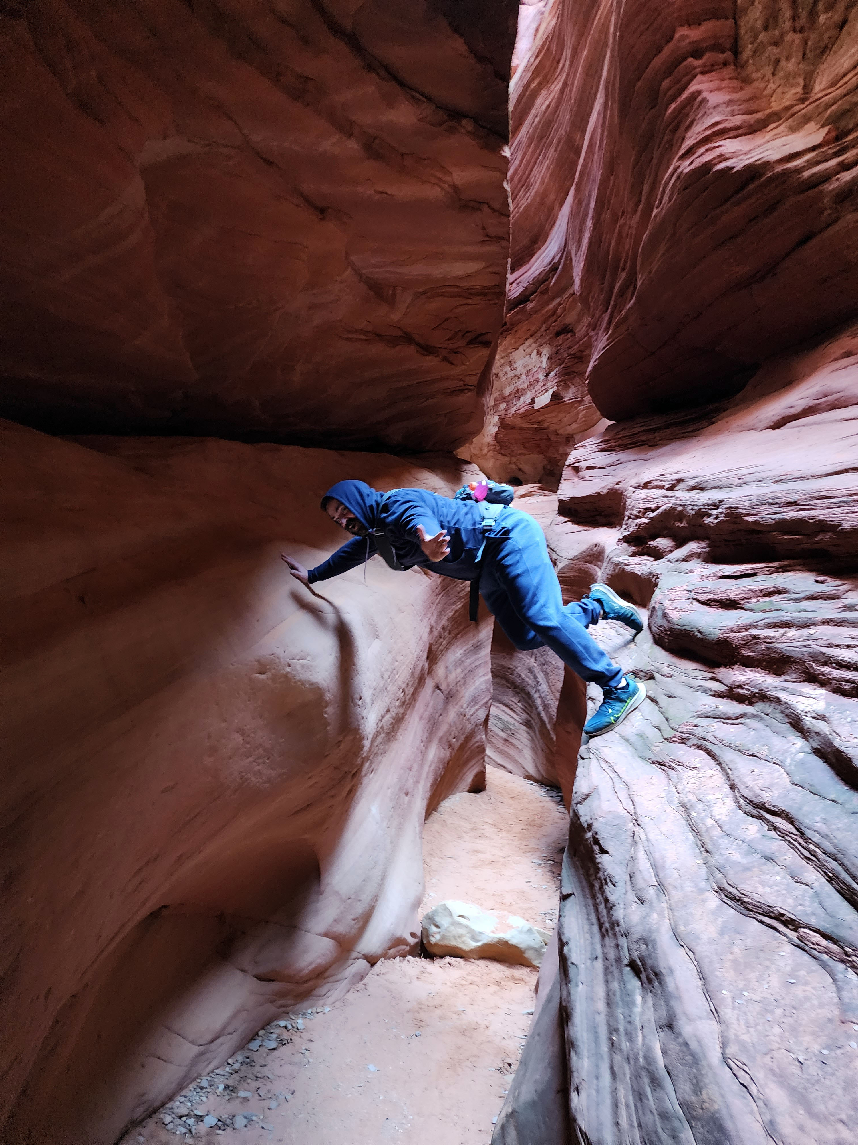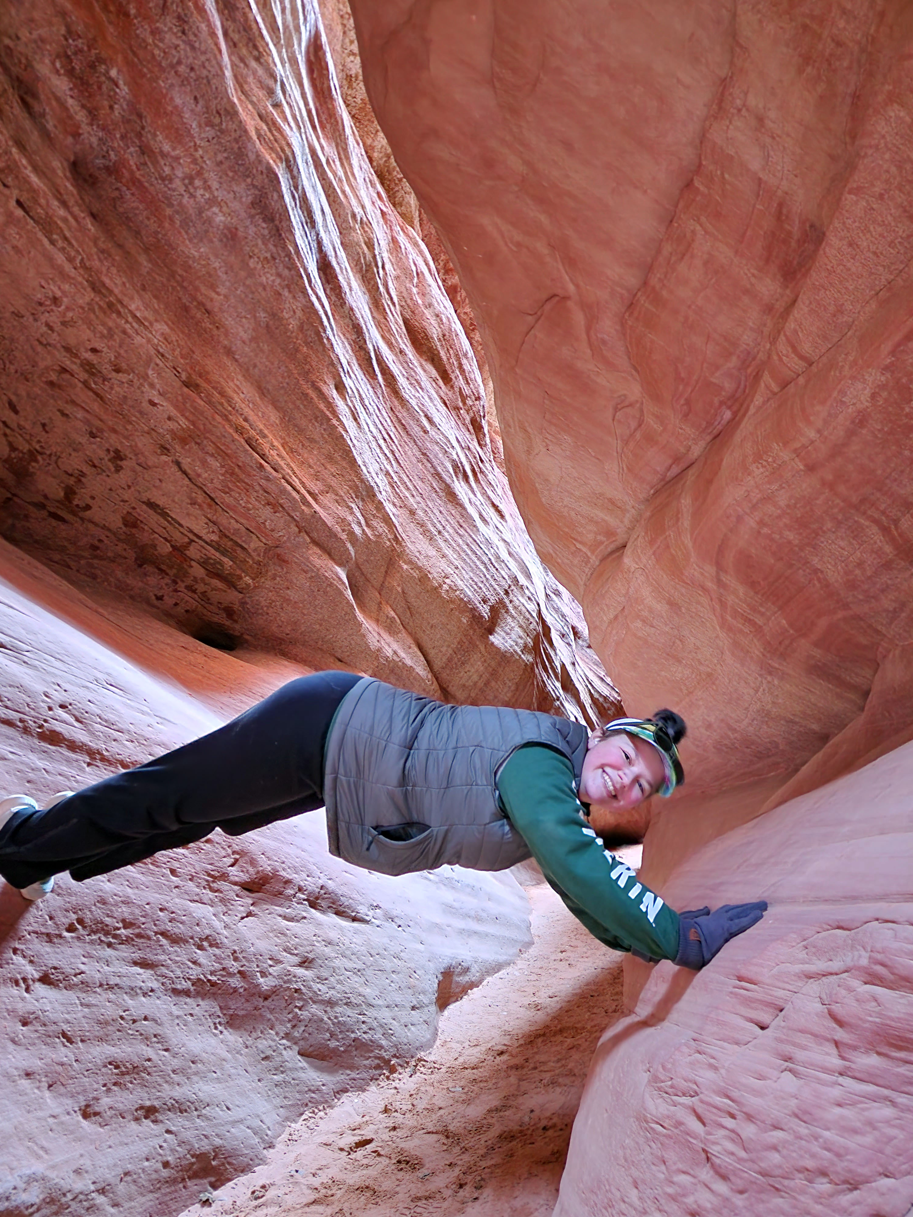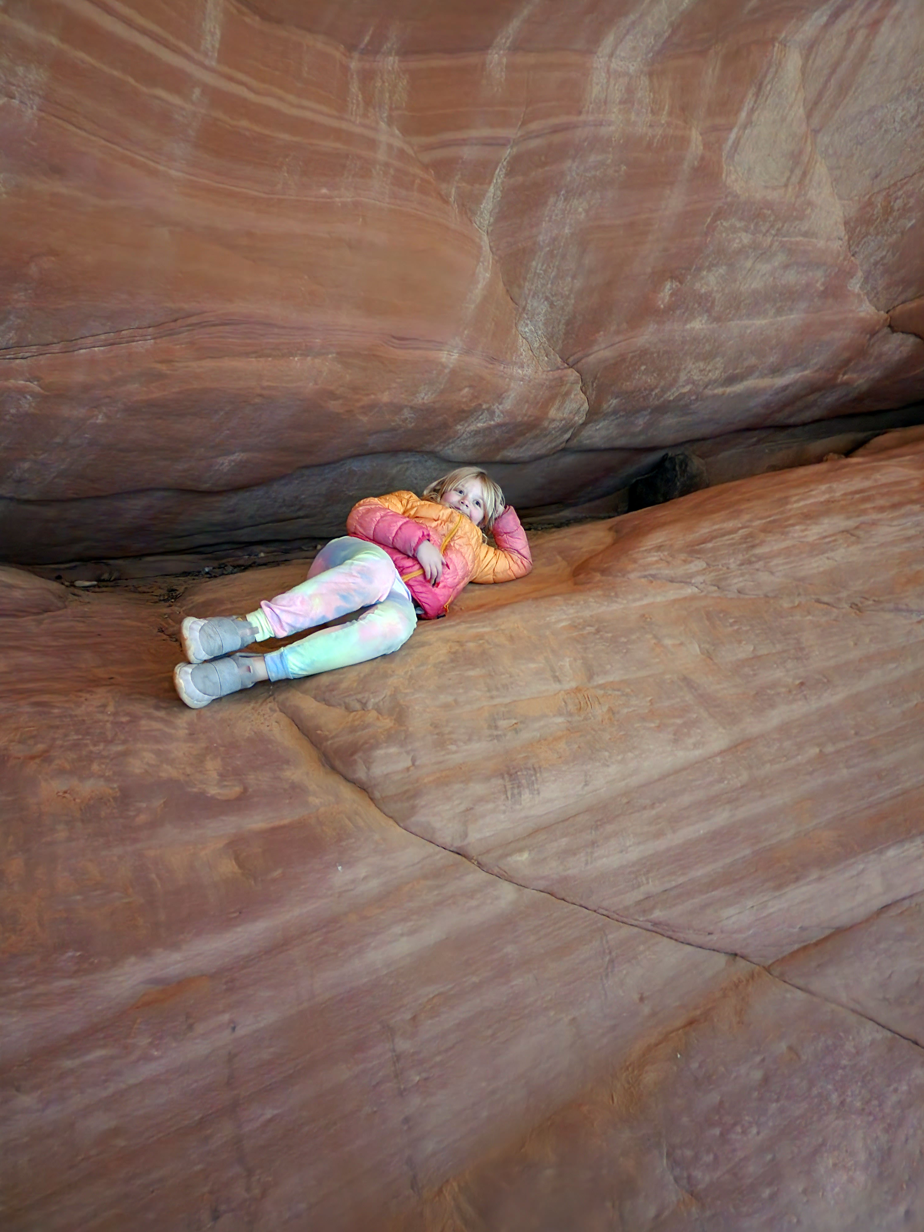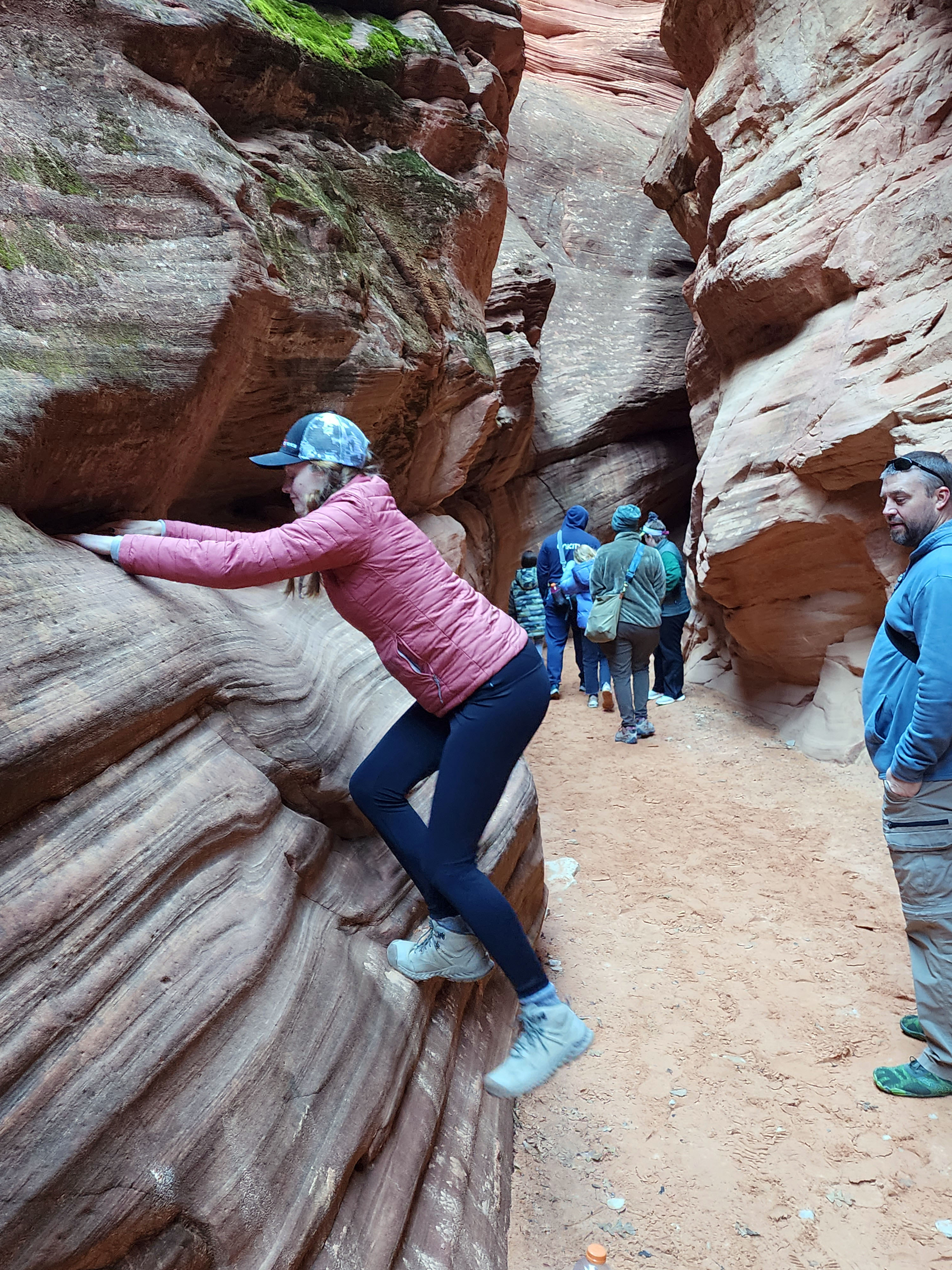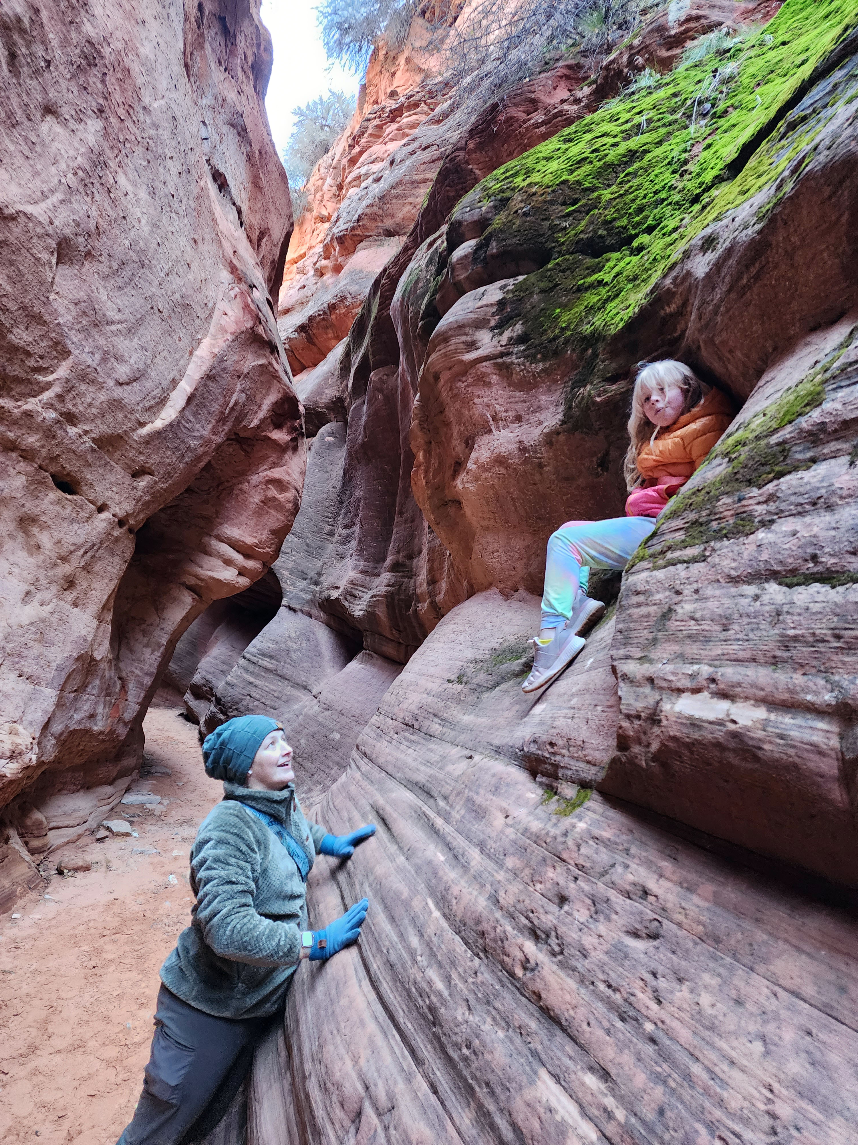 Peek A Boo is also known as Red Canyon. It is a beautiful, fun, family-friendly slot canyon located just east of Hwy 89, north of Kanab. This is a great outing for someone who wants a safe slot canyon experience or is just learning about canyoneering. It is also a wonderful canyon adventure for kids.