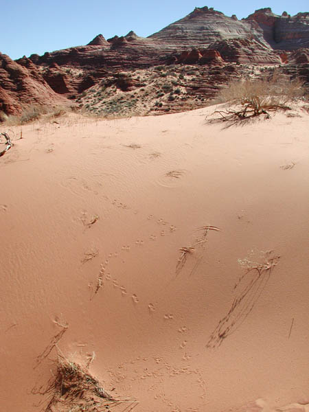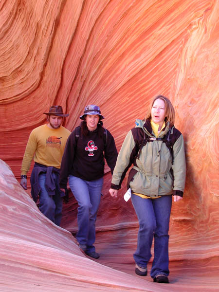 "The strict regulations are absolutely necessary," said Paula Swenski, an intern and graduate student from NAU who helped the Paria ranger patrol the wilderness area and enforce the rules. I met her at the Wire Pass Trailhead, where she was fastidiously checking each parked vehicle to make sure it was displaying its yellow parking tag. "We tend to get a lot of gate-crashers, people who show up without a permit but are hell-bent on seeing The Wave. The culprits include a lot of Europeans with vague maps who've come half-way around the world looking for the 'Coh-oh-te Boots,' but there are a lot of guilty Americans too, people who understand the rules but consciously choose to disregard them. The resource is so fragile that people have to be more conscientious if they want to continue to enjoy it in the future."