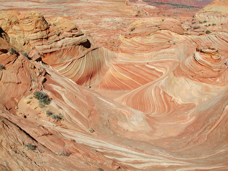 "Coyote Buttes is managed as two units, Coyote Buttes North and Coyote Buttes South. On December 24, 1997, each unit was mandated with a visitor use limit of 10 people per day. This is up from the 4 people per day limit established in 1986. Coyote Buttes North is the more popular of the two units. It contains the Wave, a wondrously sculpted sandstone formation that every professional nature photographer worth his salt is required by conventional wisdom to have in his portfolio. The Wave lies on the northwestern tip of a prominence called Top Rock, along the eastern edge of Sand Cove. This formation is so sought after that reservations for the peak seasons of March-May and September-November must be made months in advance. Much easier to access is the south section, which is just as beautiful but can only be reached by hiking after negotiating a sandy 4WD road.