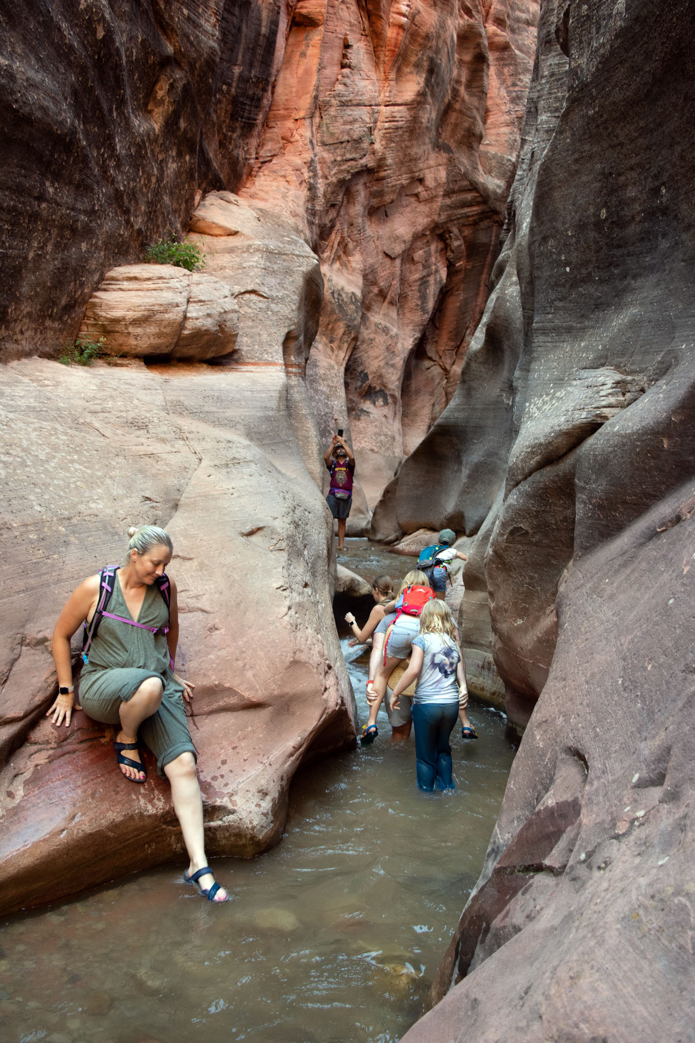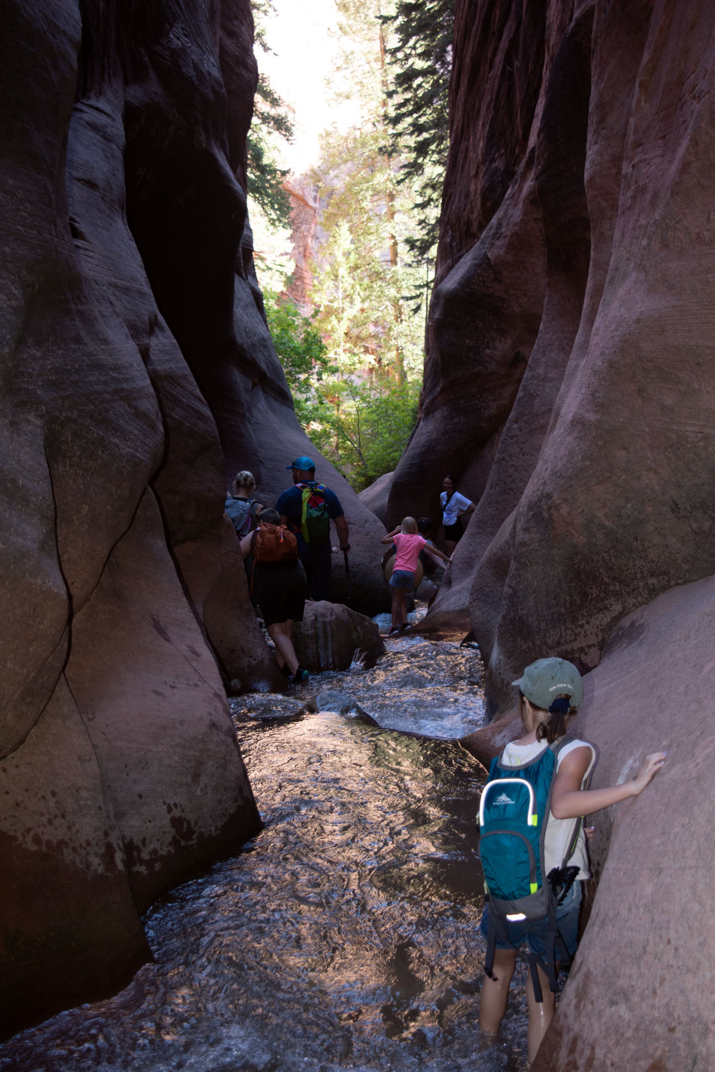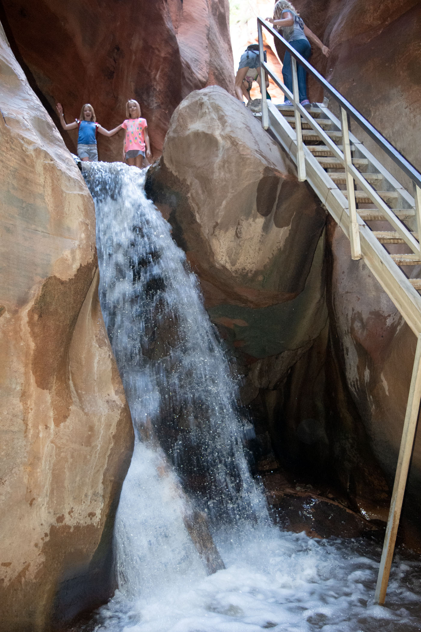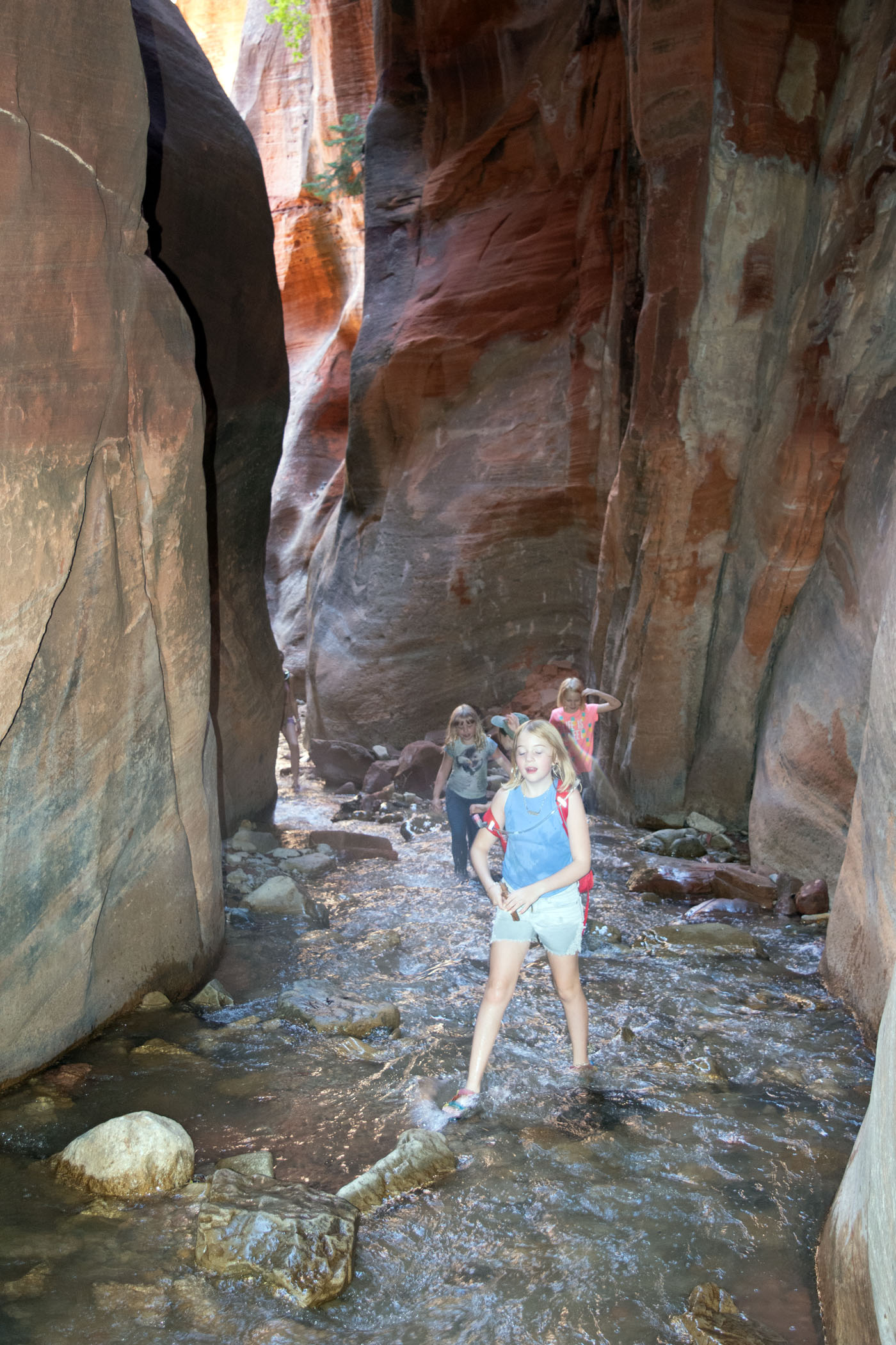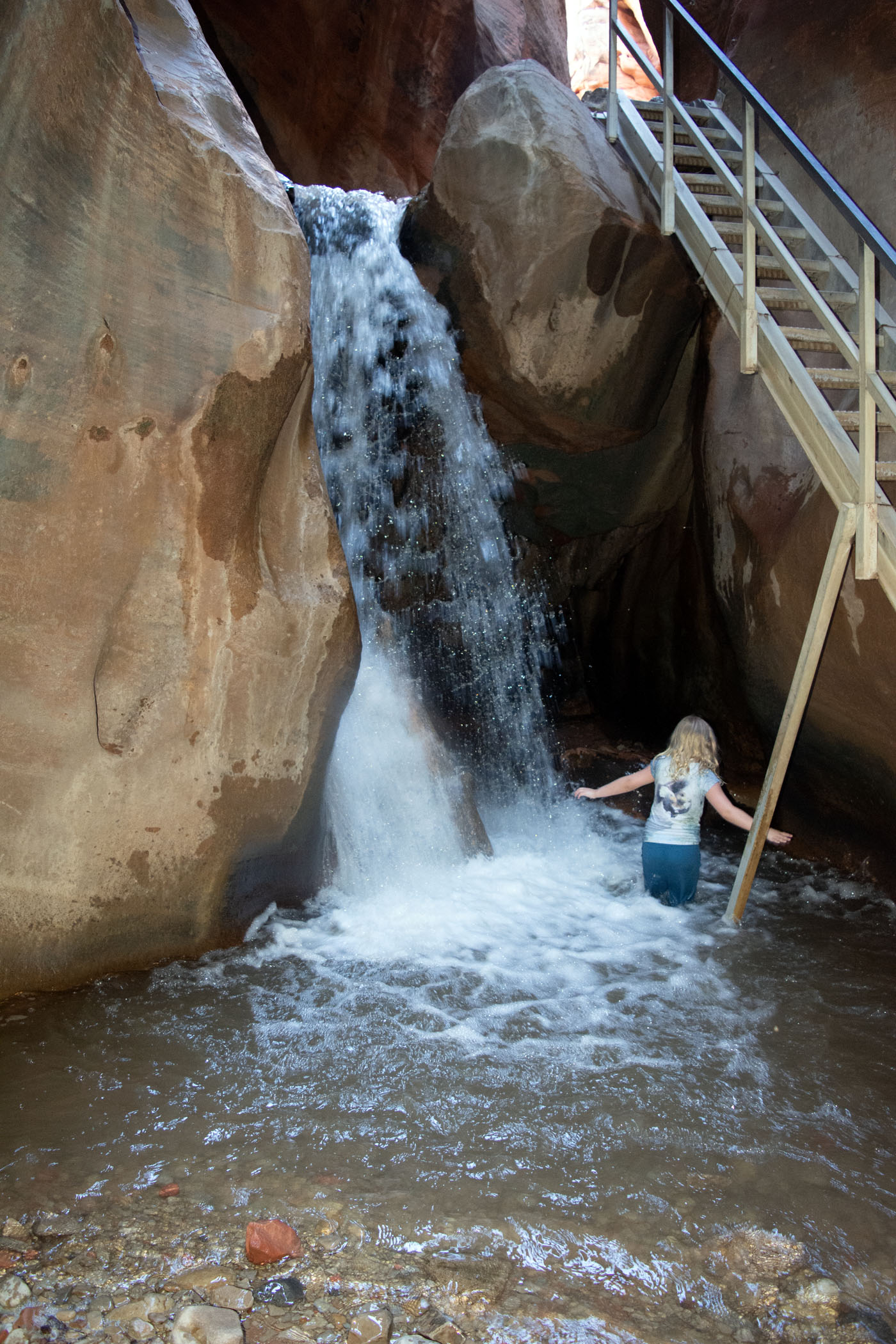 The Kanarra Falls hike is one of our favorite family-friendly slot canyon hikes. It is a beautiful canyon that is fun to hike. Between the beauty of the canyon and the excitement of hiking in a stream and climbing waterfalls, it is satisfying for hikers of most ages and experience levels. Our group included a couple of 9-year-olds, and they needed help in a few spots, but they managed the hike very well and couldn't stop talking about the fun.