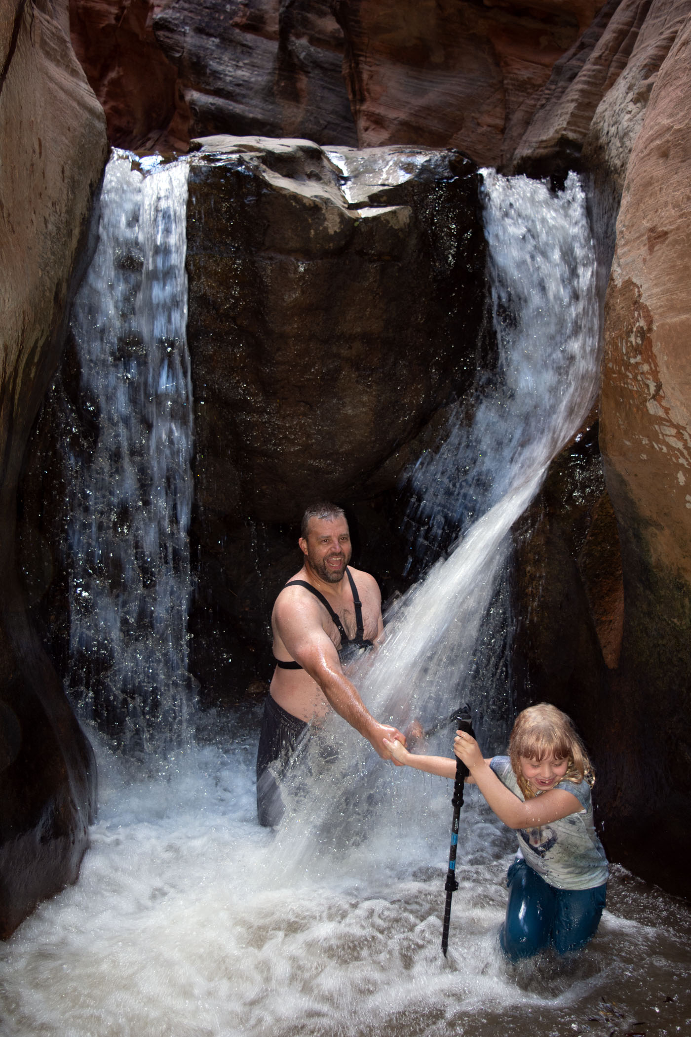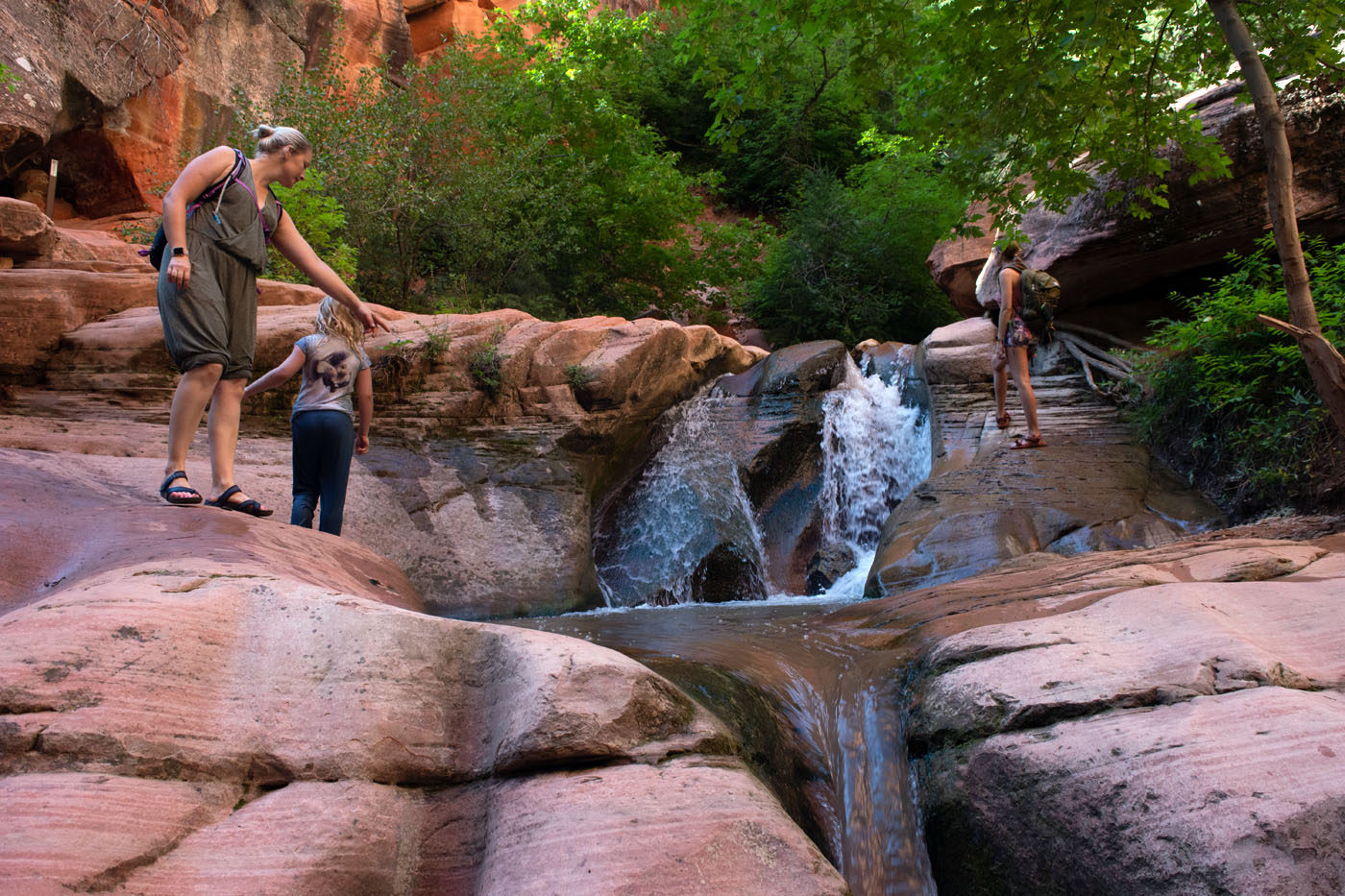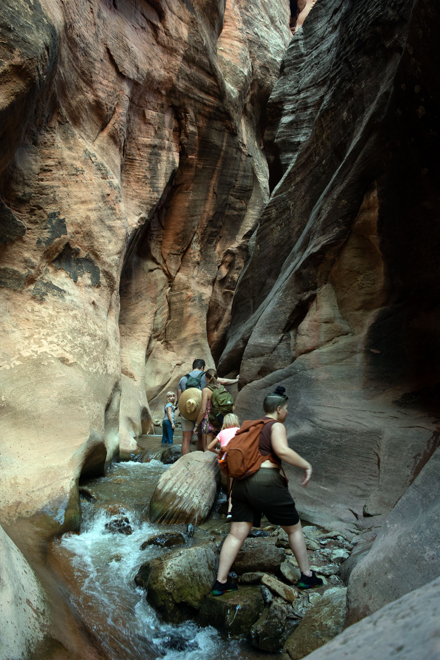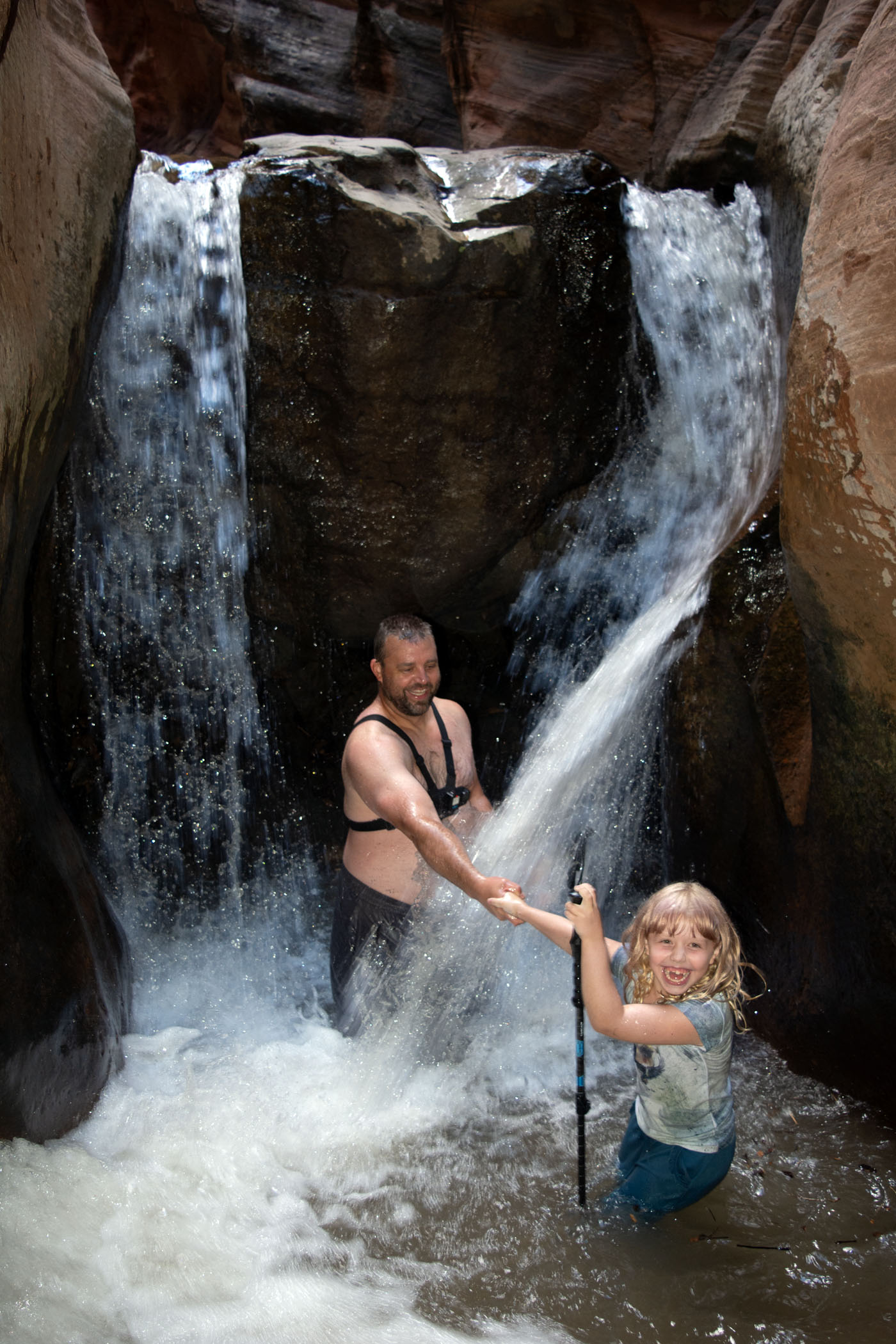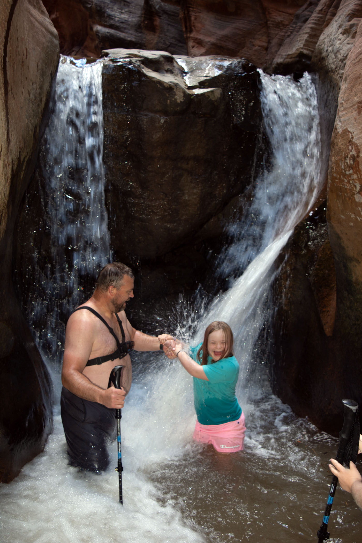 The Kanarra Falls hike is one of our favorite family-friendly slot canyon hikes. It is a beautiful canyon that is fun to hike. Between the beauty of the canyon and the excitement of hiking in a stream and climbing waterfalls, it is satisfying for hikers of most ages and experience levels. Our group included a couple of 9-year-olds, and they needed help in a few spots, but they managed the hike very well and couldn't stop talking about the fun.