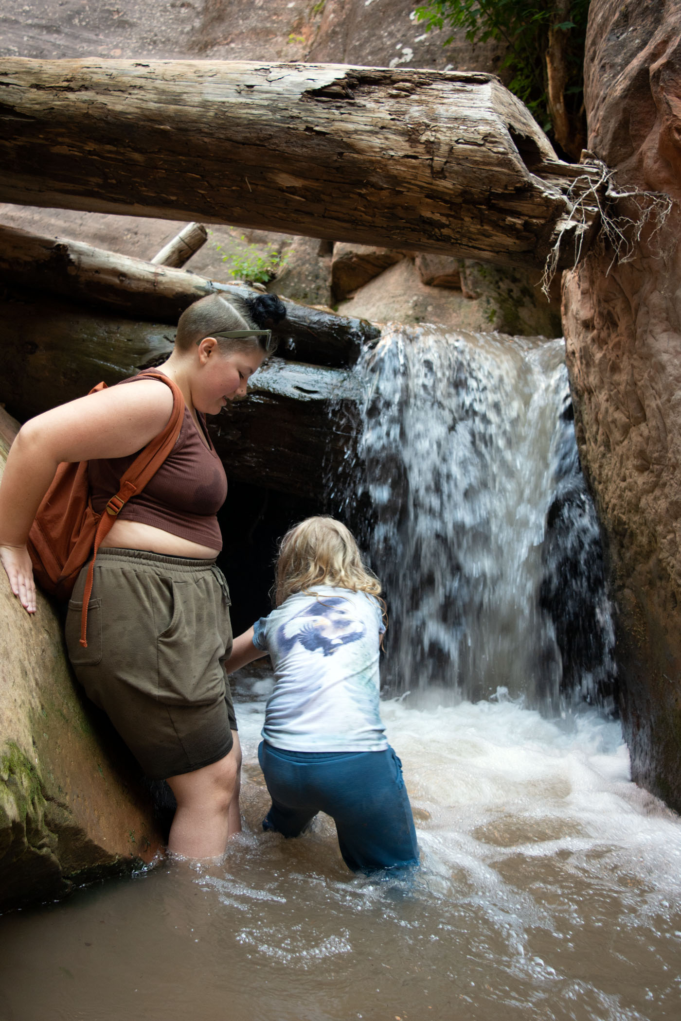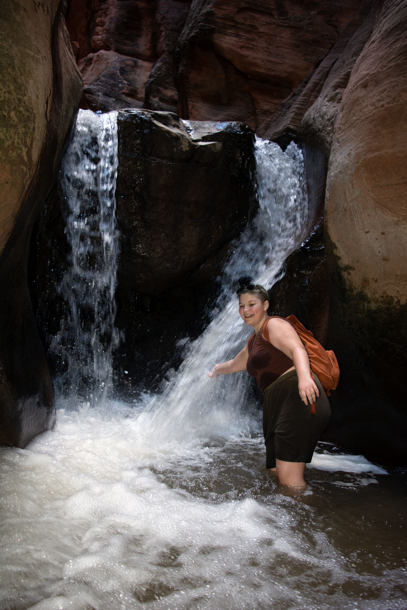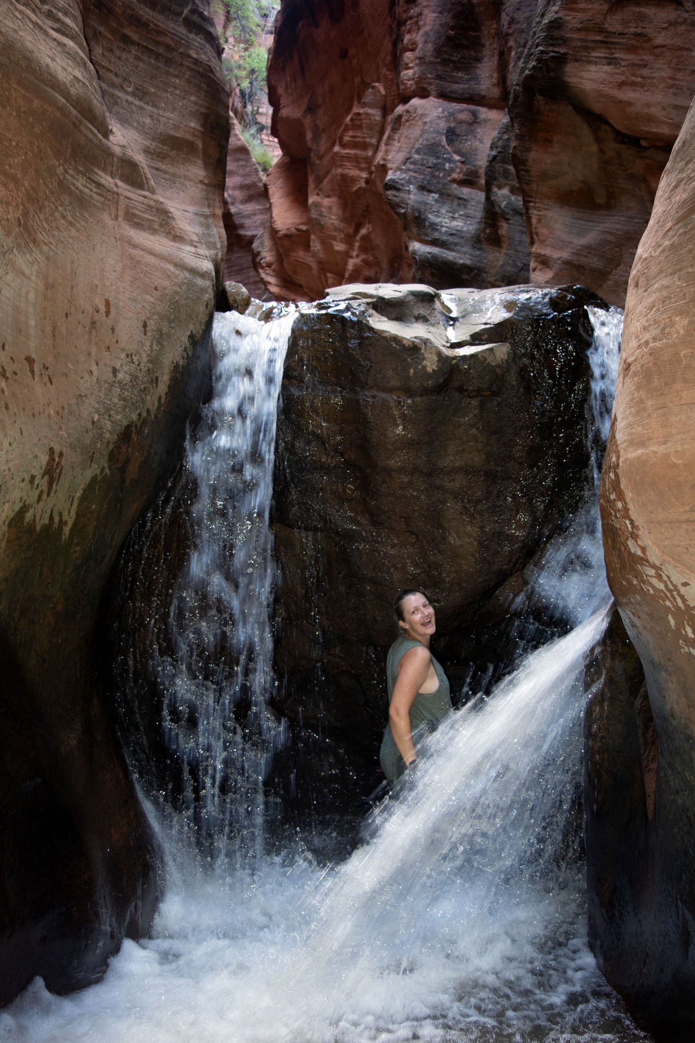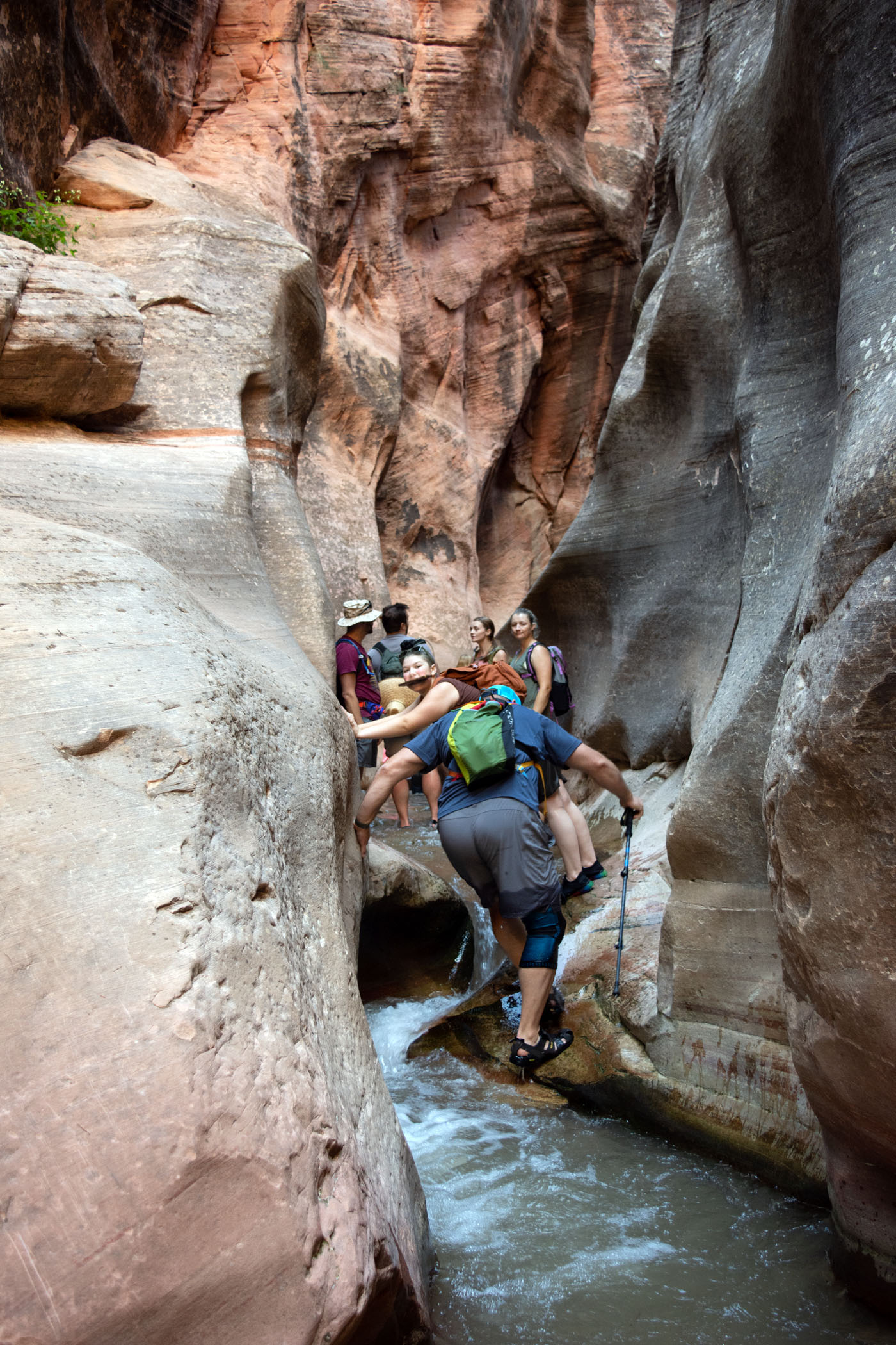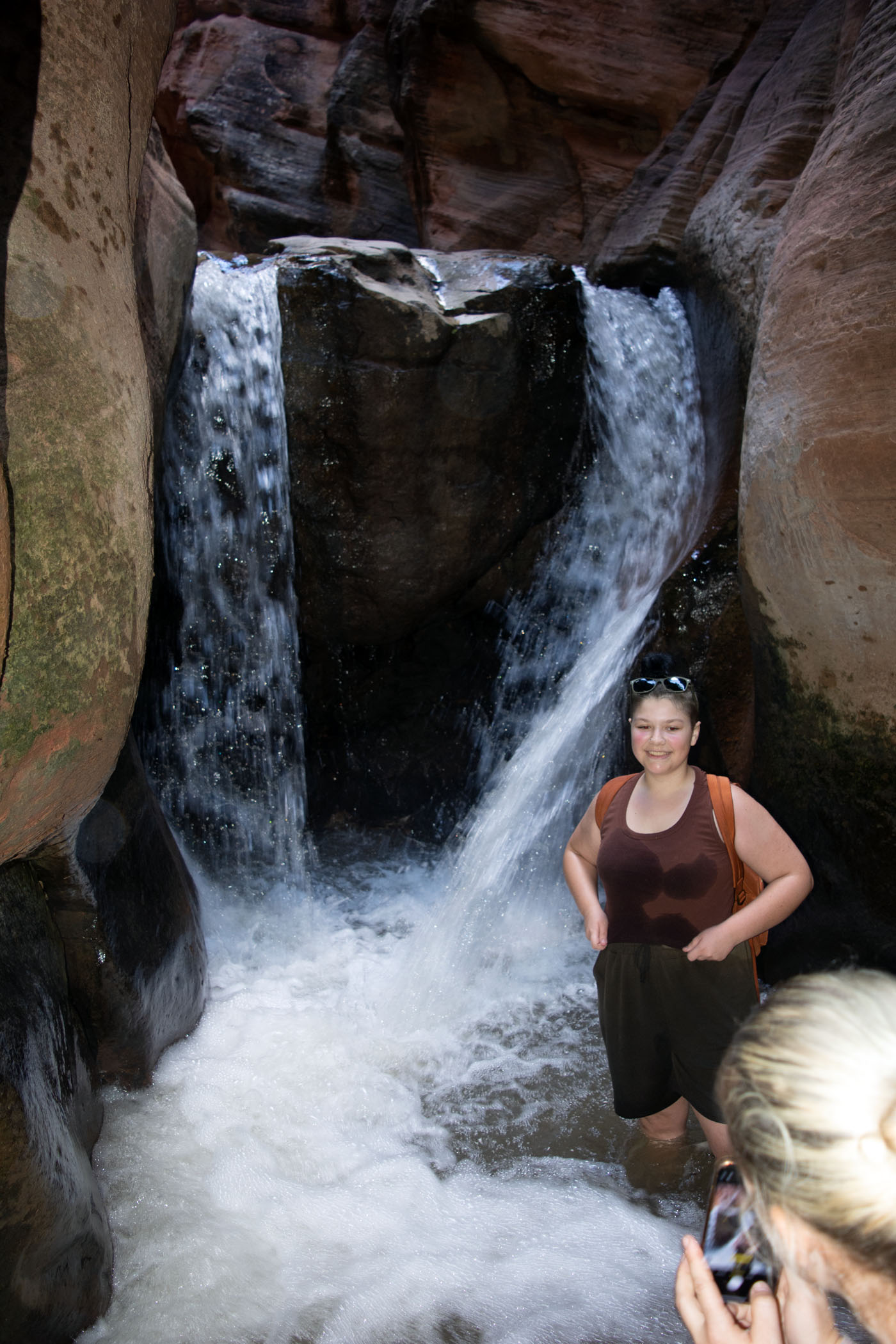The Kanarra Falls hike is one of our favorite family-friendly slot canyon hikes. It is a beautiful canyon that is fun to hike. Between the beauty of the canyon and the excitement of hiking in a stream and climbing waterfalls, it is satisfying for hikers of most ages and experience levels. Our group included a couple of 9-year-olds, and they needed help in a few spots, but they managed the hike very well and couldn't stop talking about the fun.