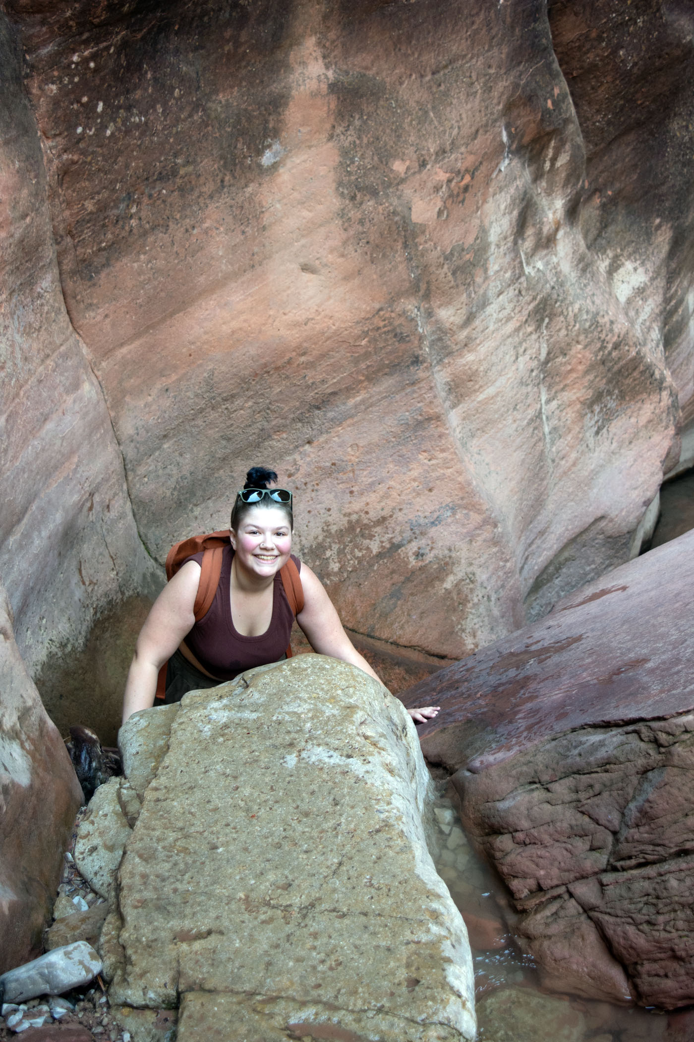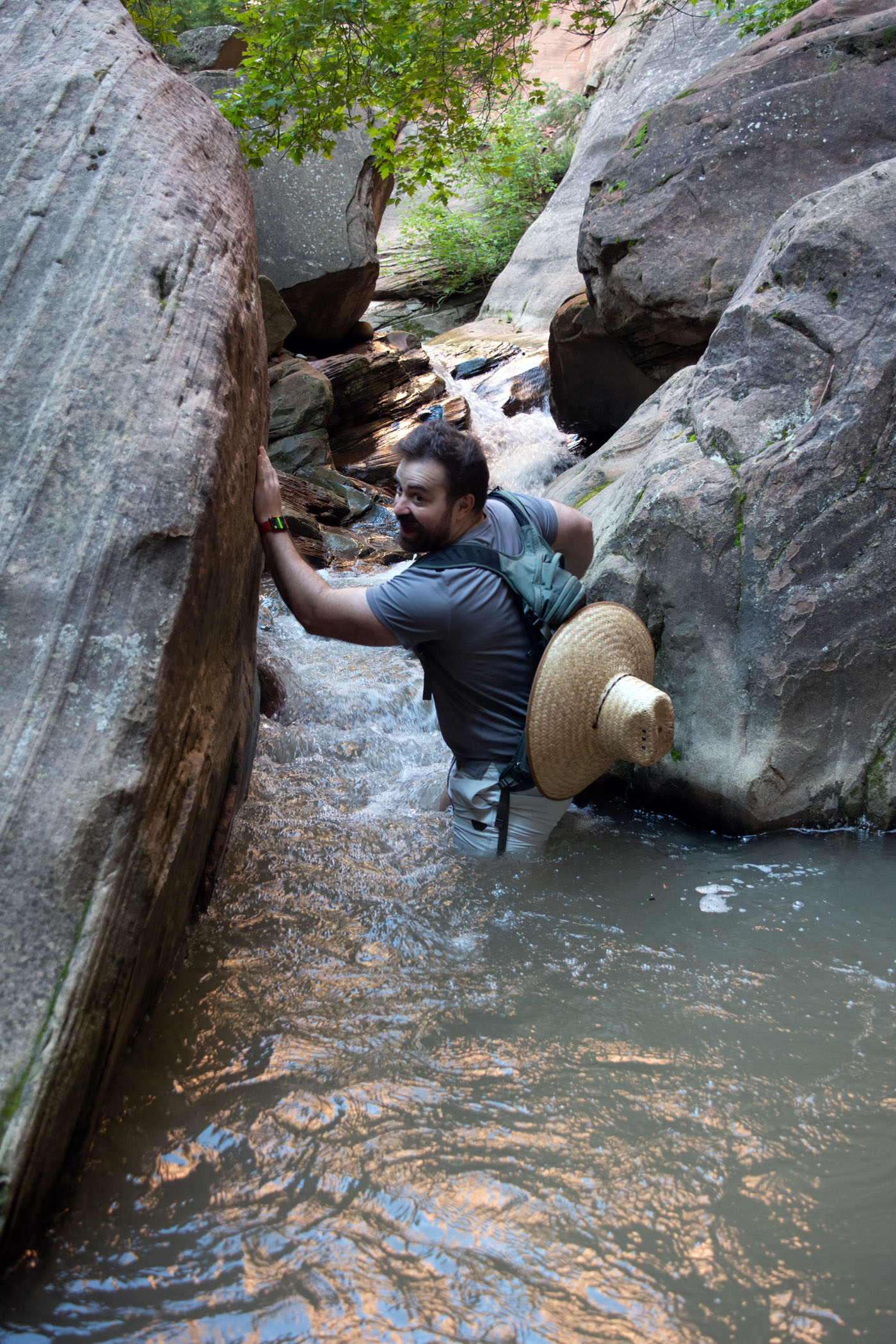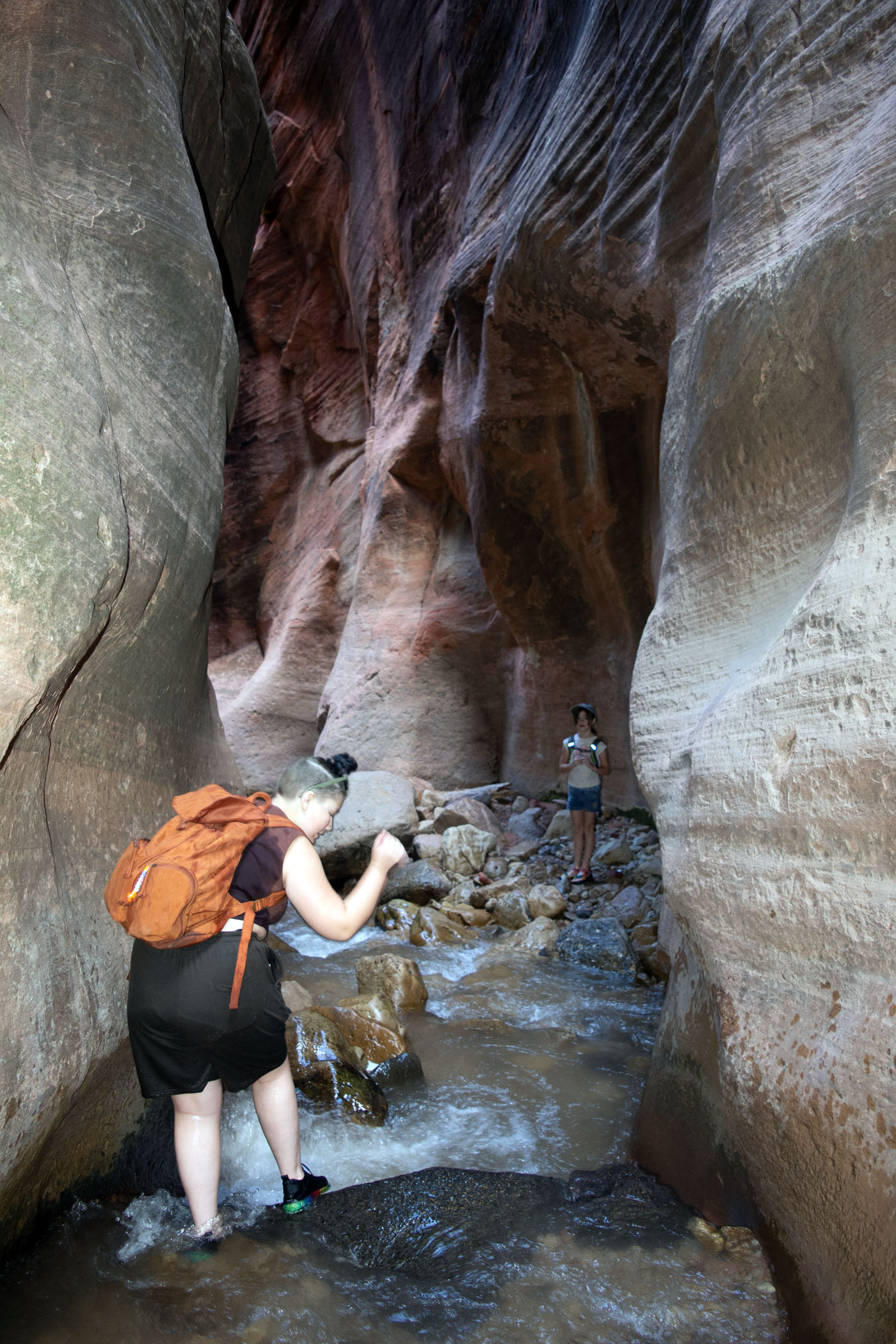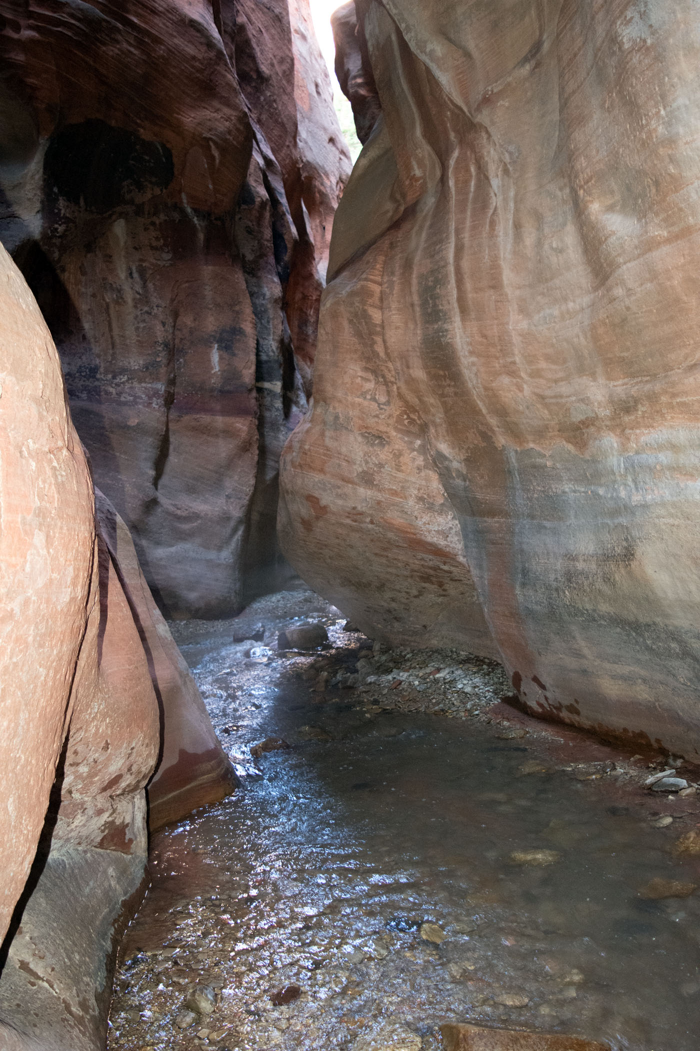 The hike is located just south of Cedar City. The trailhead is in the town of Kanarraville and the hike is on the edge of the Zion Park Kolob Canyon area. It is about 4 miles round trip. The total elevation gain is only 700 ft, but there are considerable ups and downs. Moderate scrambling is needed in a couple of spots. There are numerous stream crossings and you do need to hike in the water in some spots. The water is usually only ankle deep but there are a few deeper holes. If you stay on the trail the hike is pretty easy, but most people can't resist the lure of the water and so they wade deeper and scramble more than is necessary.