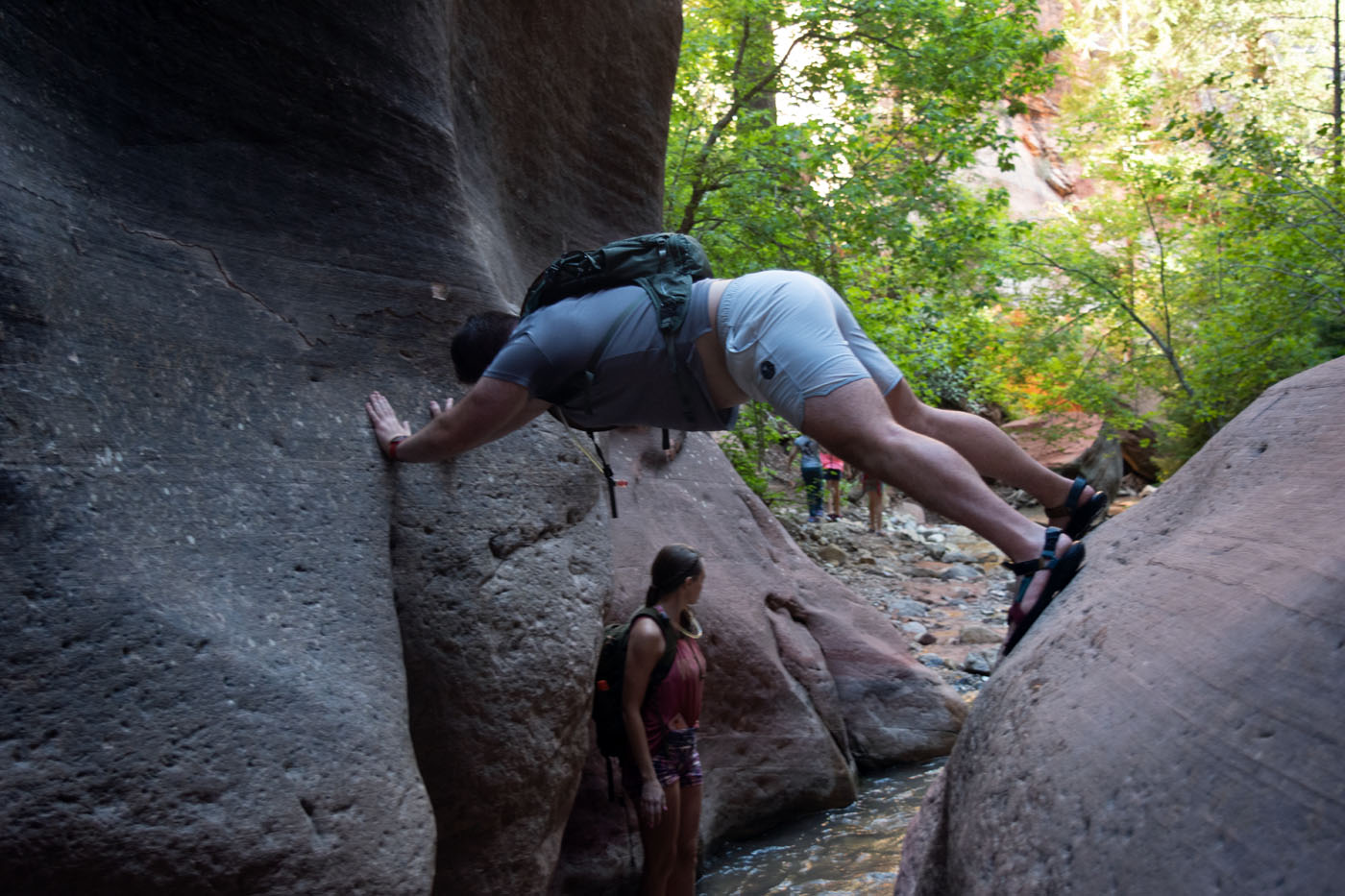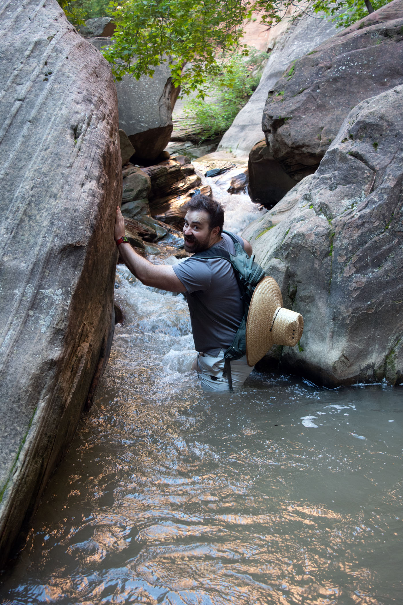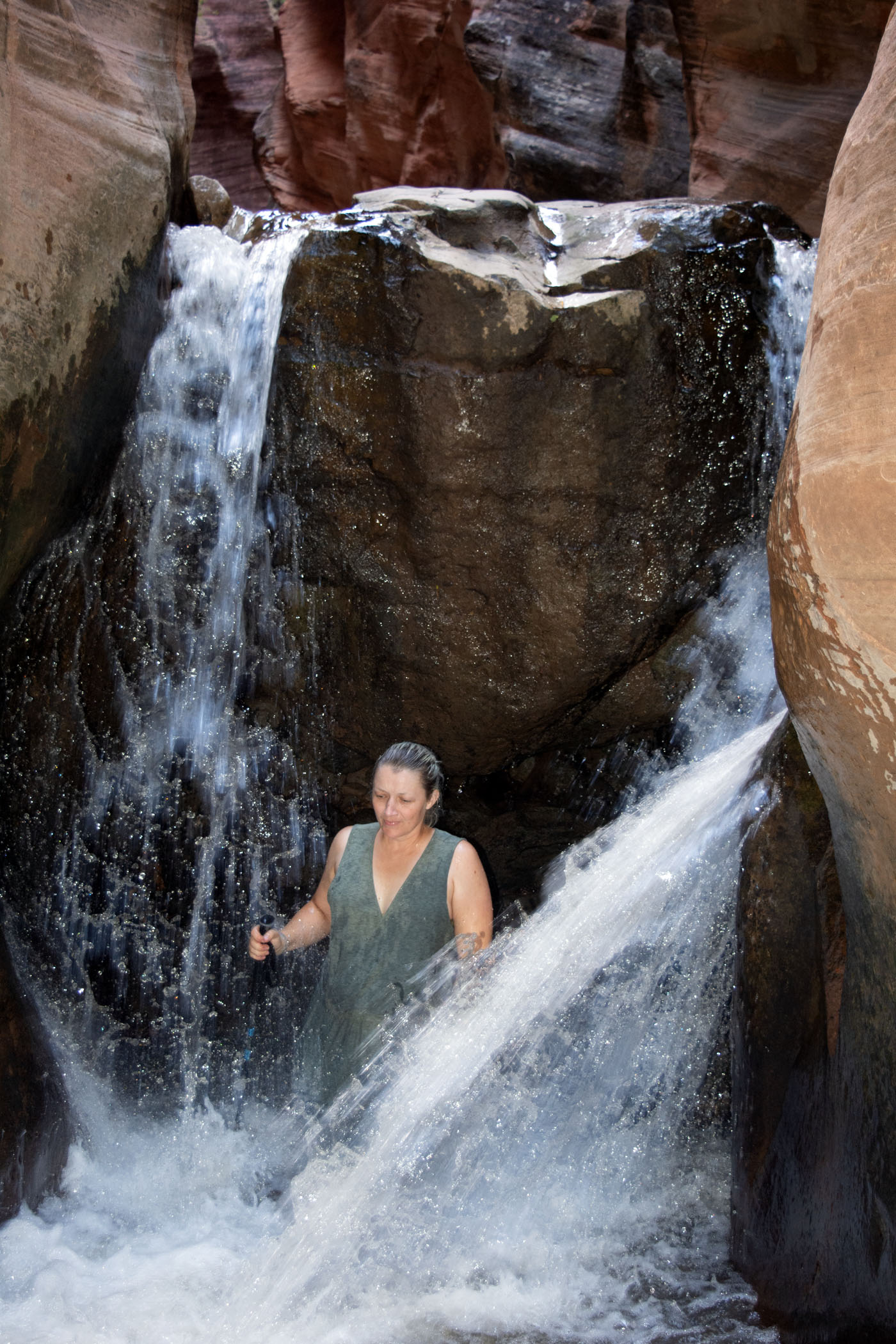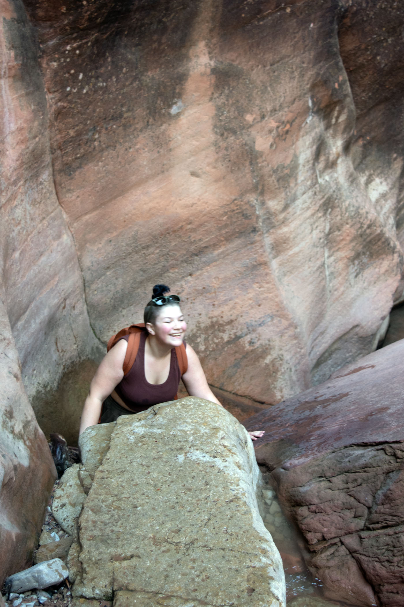 The hike is located just south of Cedar City. The trailhead is in the town of Kanarraville and the hike is on the edge of the Zion Park Kolob Canyon area. It is about 4 miles round trip. The total elevation gain is only 700 ft, but there are considerable ups and downs. Moderate scrambling is needed in a couple of spots. There are numerous stream crossings and you do need to hike in the water in some spots. The water is usually only ankle deep but there are a few deeper holes. If you stay on the trail the hike is pretty easy, but most people can't resist the lure of the water and so they wade deeper and scramble more than is necessary.