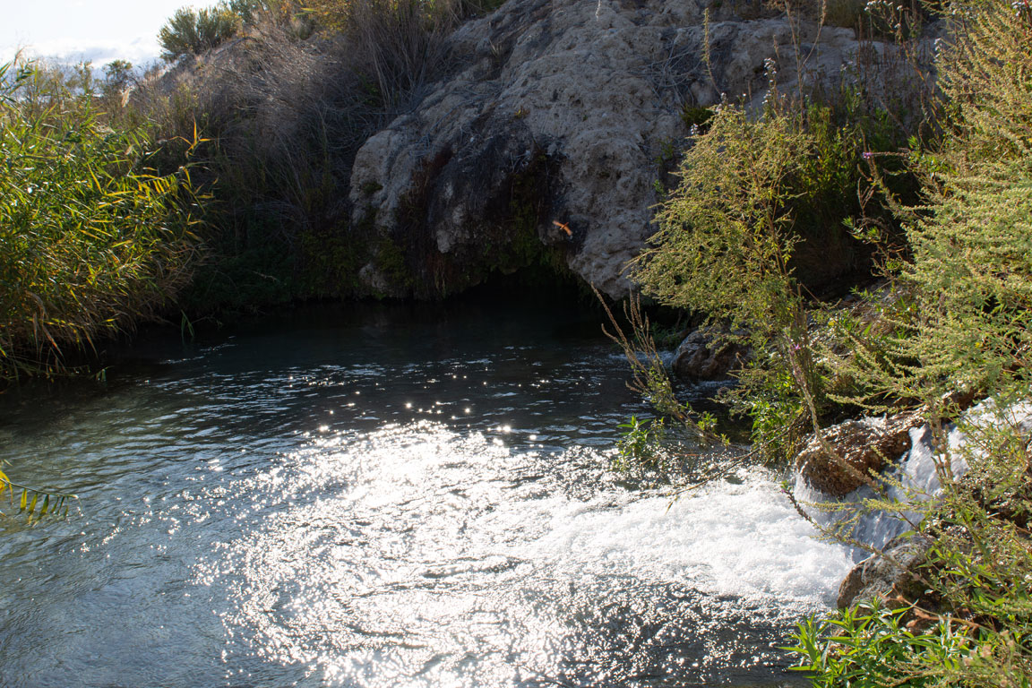 The access road comes right up the the main pool, where flows come from a small cave, which you can easily enter with your head above water. Additional water cascades down the hillside and over two small waterfalls. Climb up the waterfalls and follow a trail up the cascade and you will find the second pool, halfway up the hillside.