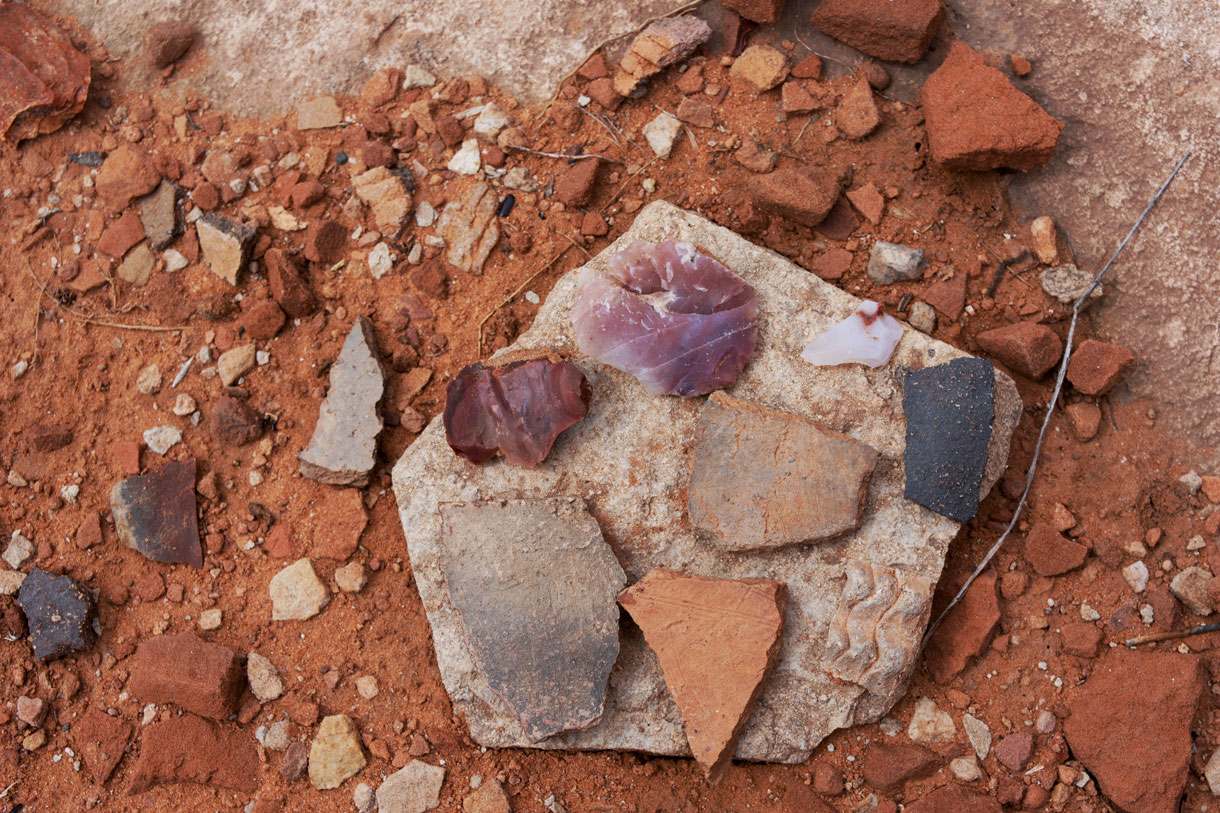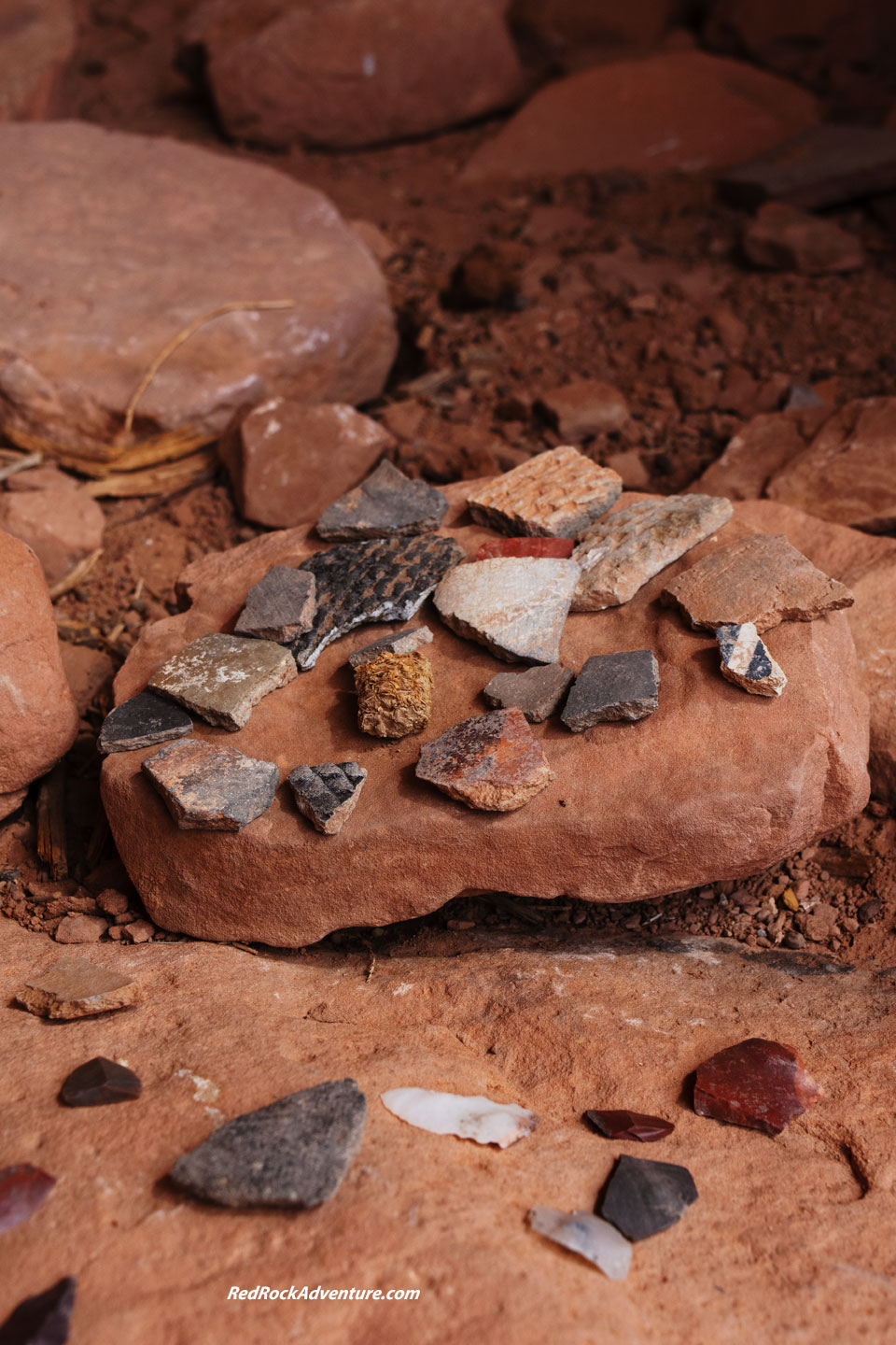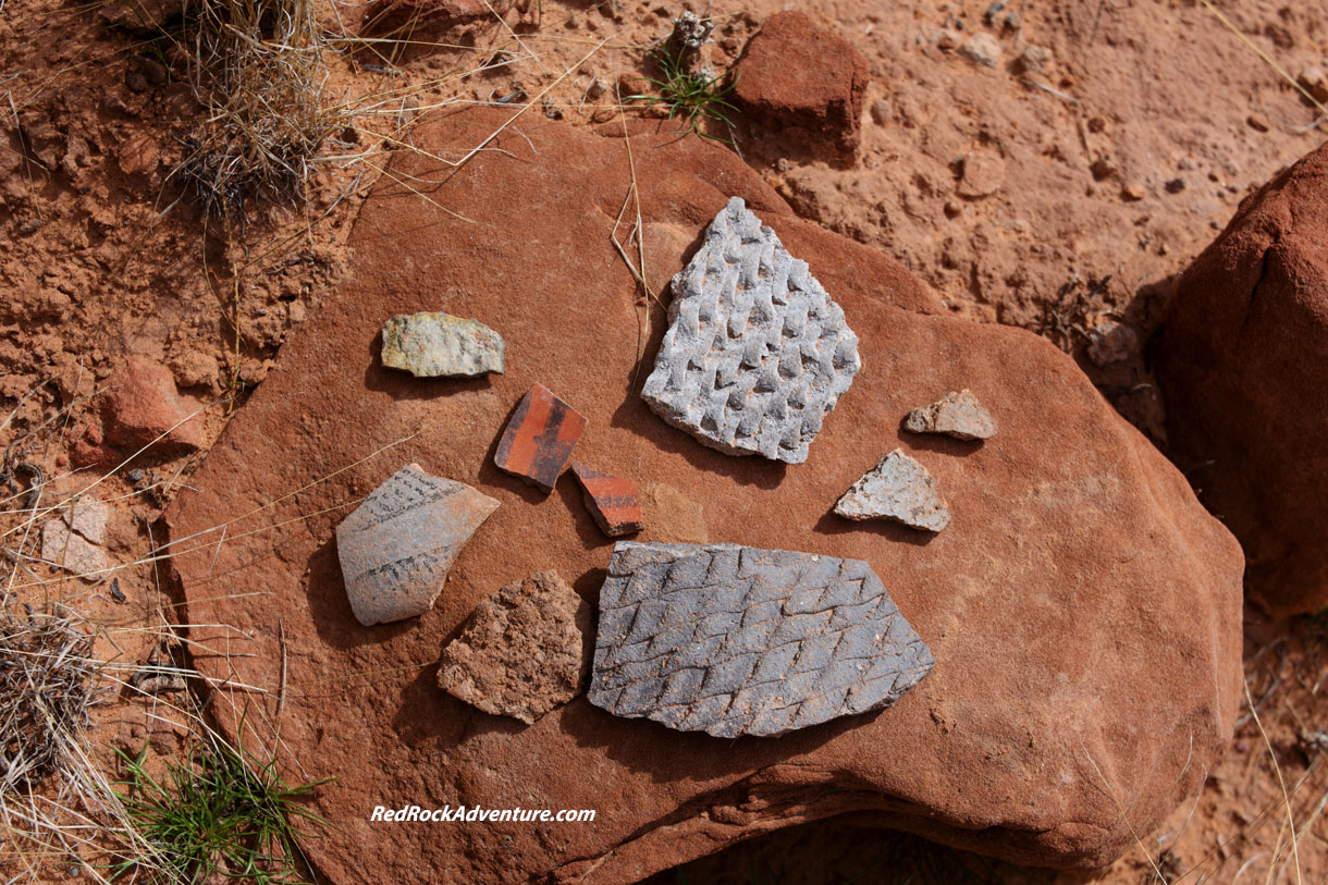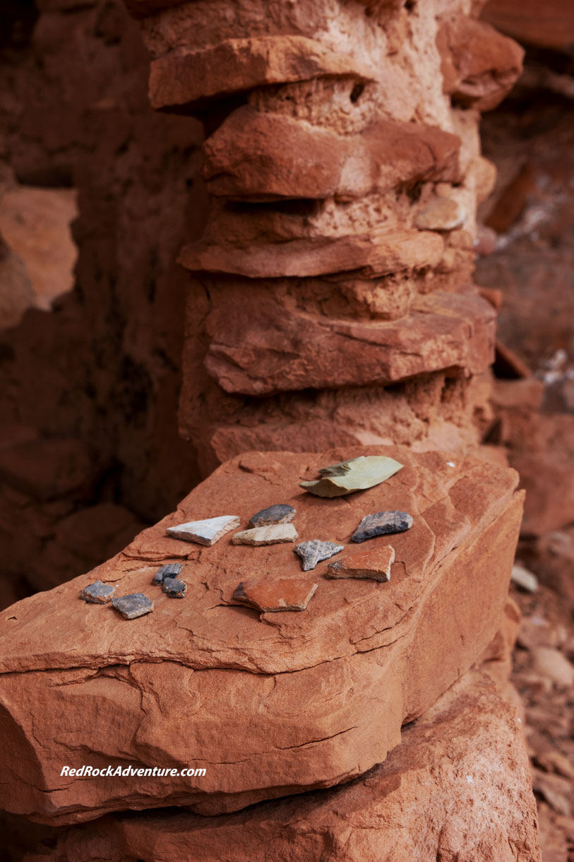 Much archaeological research has been done in this area but there are thousands of sites that have not yet been studied. Research is ongoing. Archaeologists ask people not to “cluster” sherds and other artifacts but many people do anyway. I respect the scientists and follow their advice. I don’t touch or climb on the ruins or cluster artifacts. I do shoot existing clusters, because they make impressive photos, as you can see here.