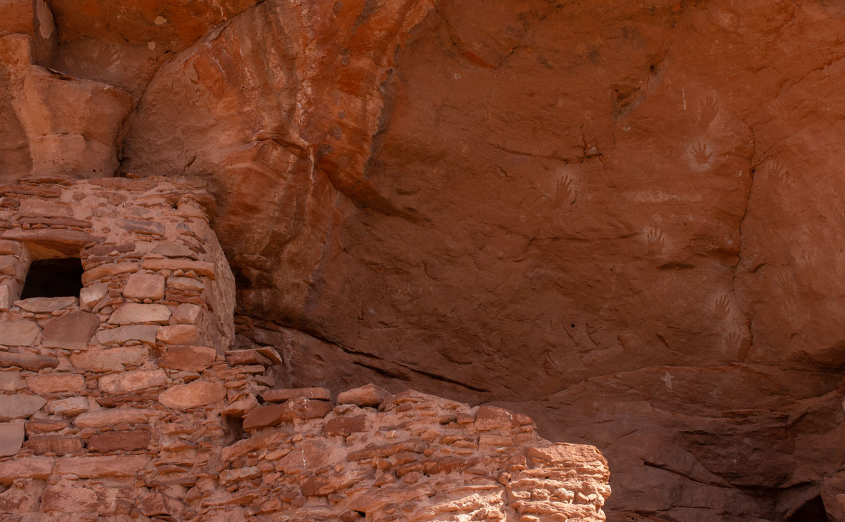 We planned to hike into four Ancestral Puebloan (Anasazi) sites in the Bears Ears Comb Ridge area but had so much fun we never made it past the first two. They were amazing, with impressive ancient structures, rock art, flint chips, pottery sherds, and other artifacts.