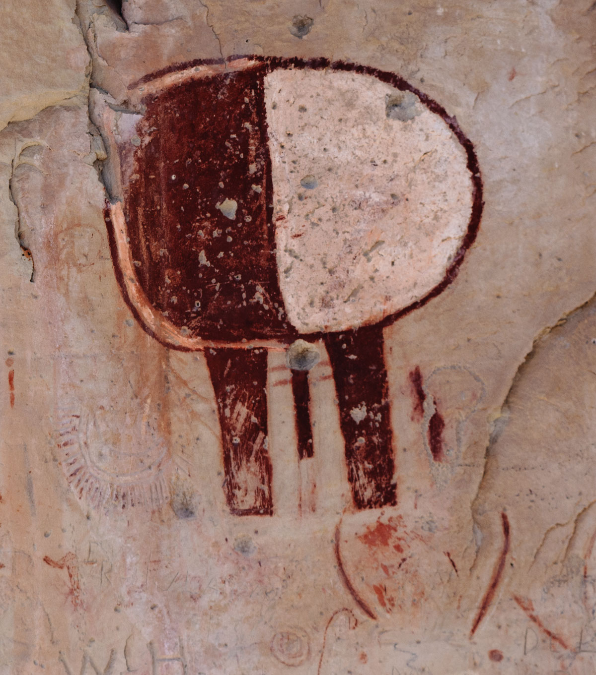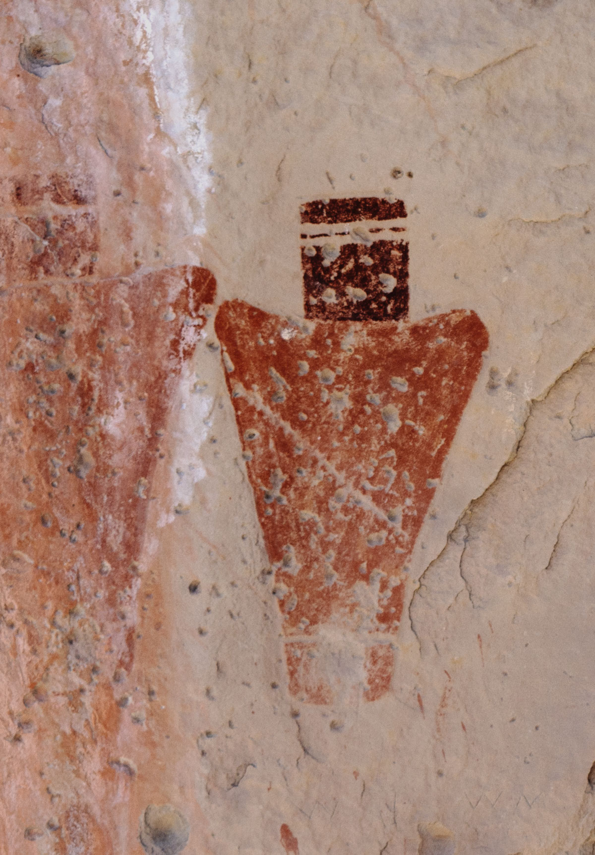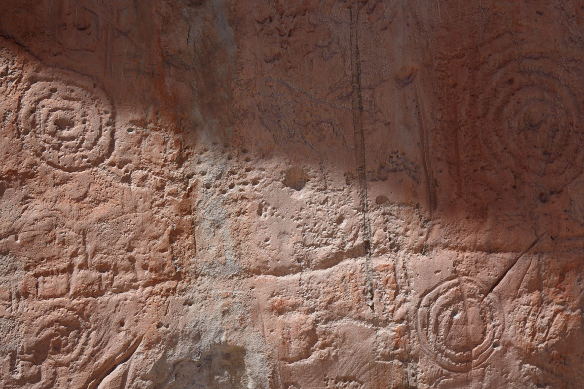 Large, colorful pictographs and smaller, faded/eroded petroglyphs can be viewed in Fish Creek Cove, on the north end of Boulder Mountain. This is one of the most impressive rock art panels in the Capitol Reef area. The pictographs are some of the largest found anywhere.