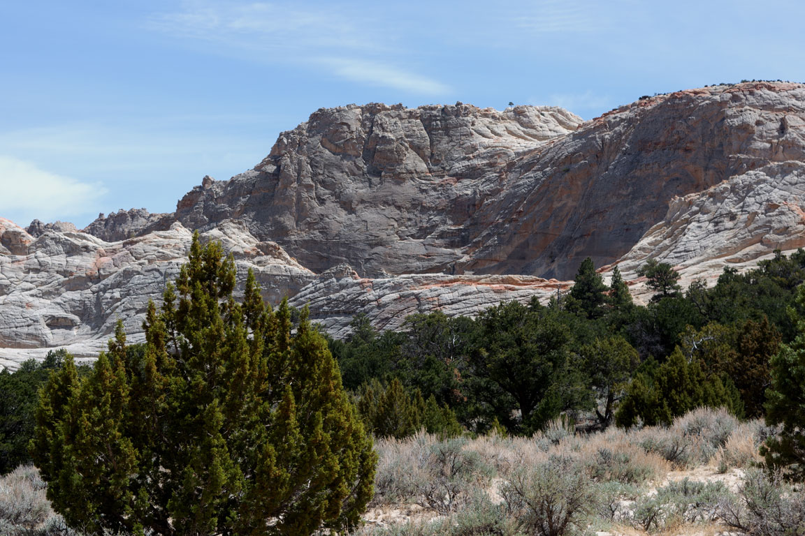 The area is very scenic, with white sandstone monoliths bordered by stone with pink hues. The trail is sandy, covered with deep, clean, fine white sand. The scenery rivals that found in Capitol Reef.