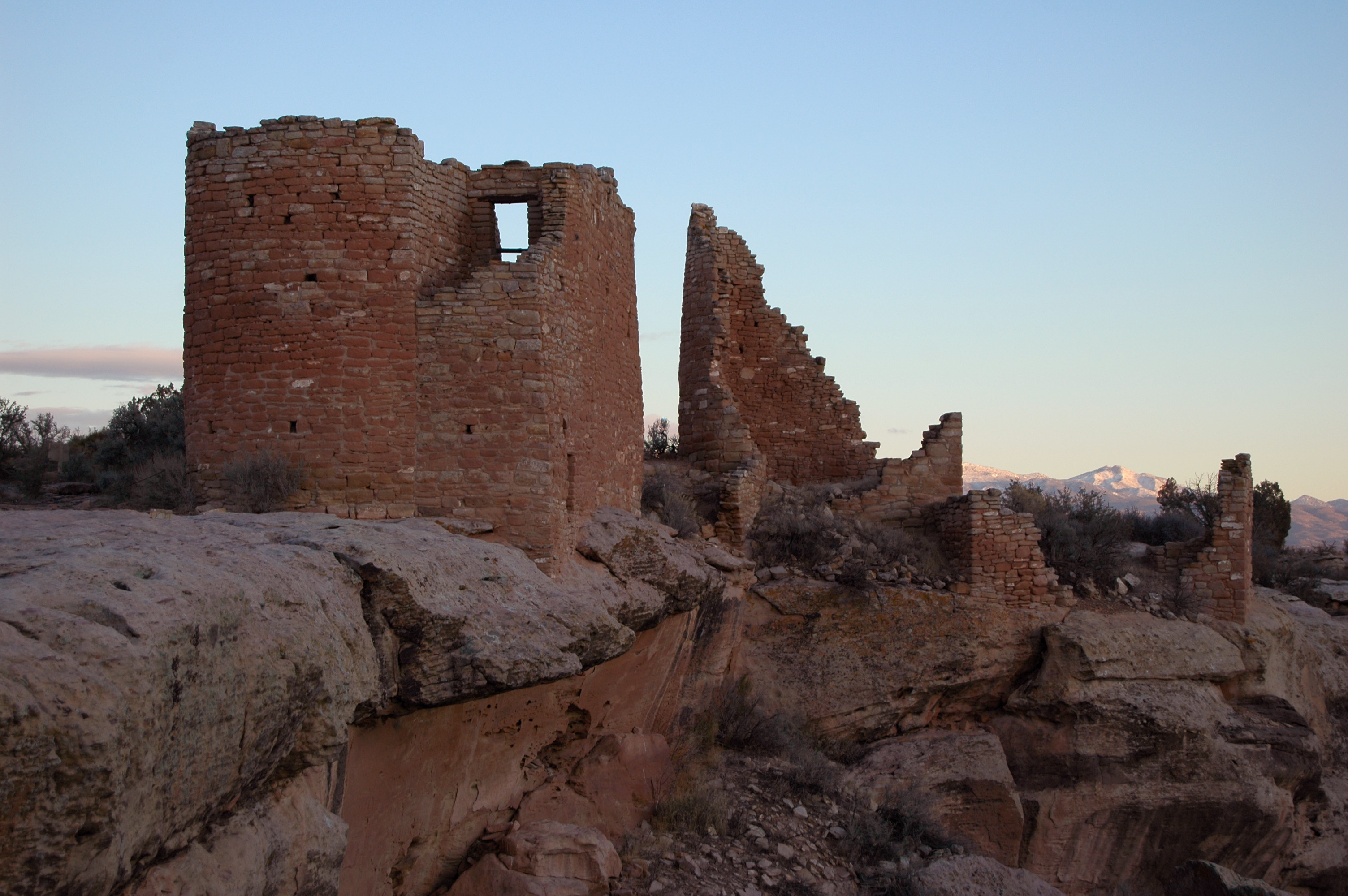 The rockwork is remarkable: D-shaped multi-room stone castles which apparently sheltered several prominent families, tall, narrow square stone towers, rock granaries and other structures. A small visitors' center at the national monument displays Anasazi artifacts, provides information about the people who lived at the site, and sells informational material.