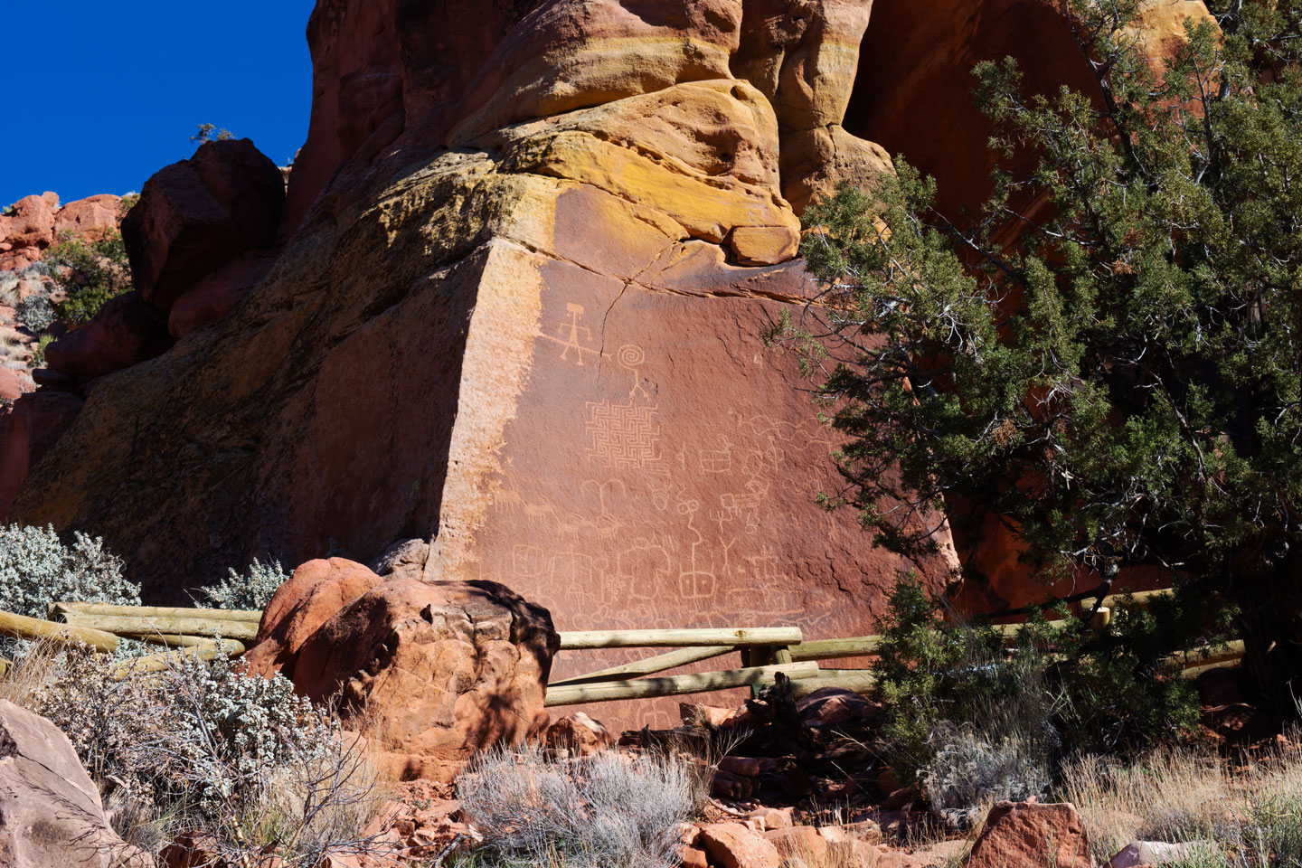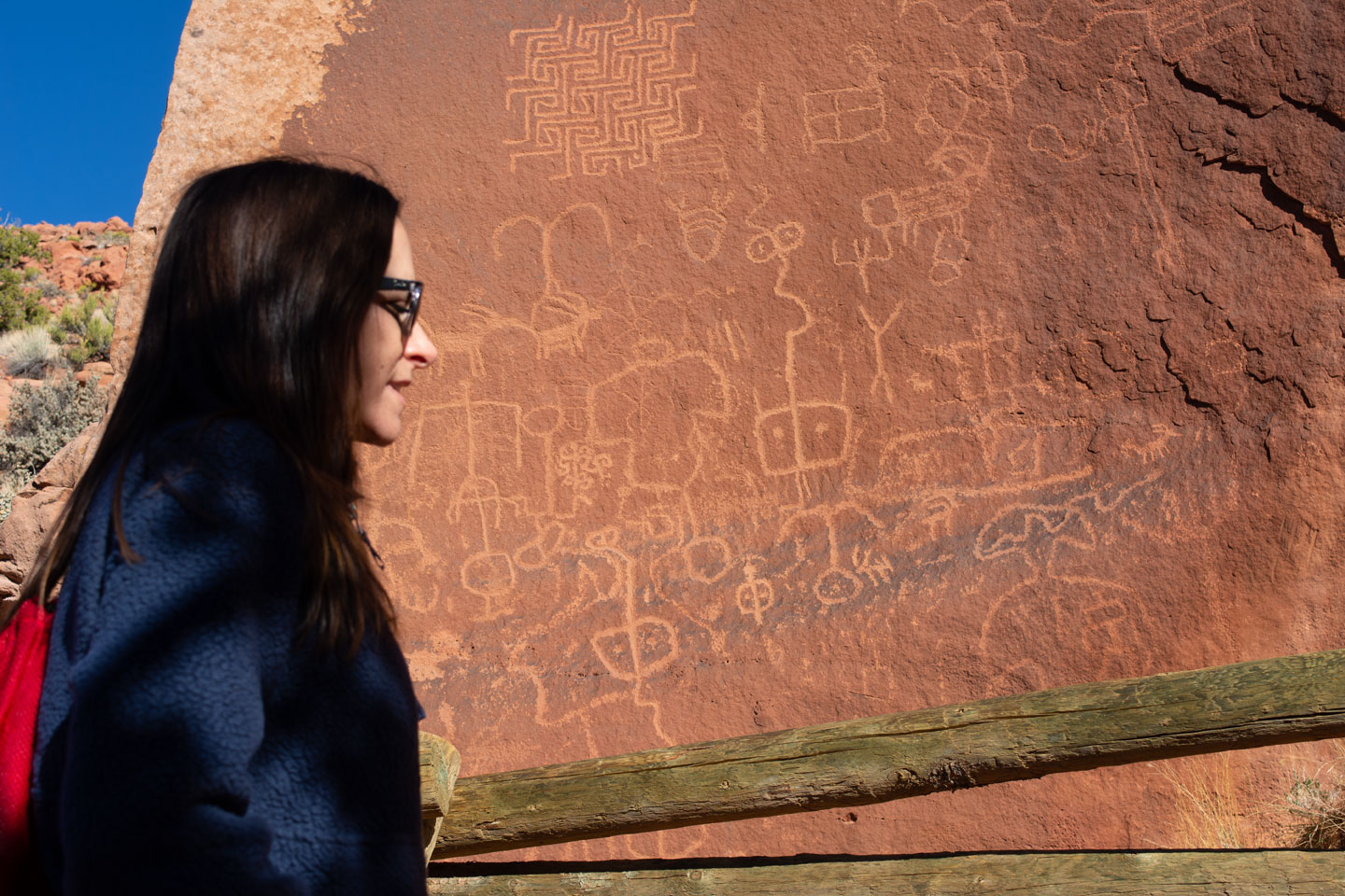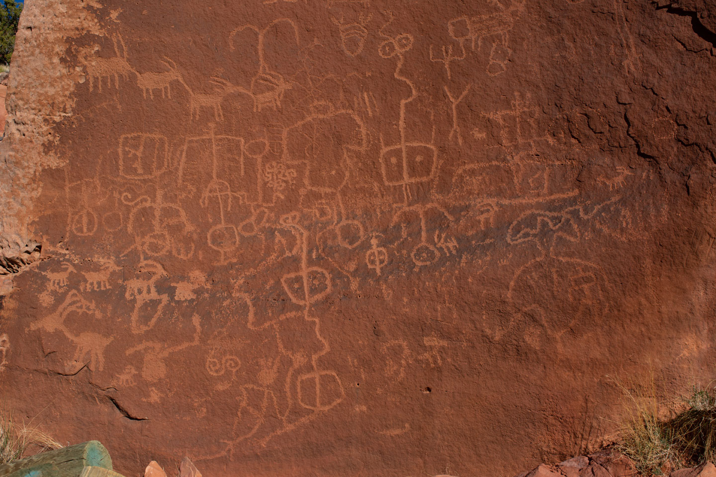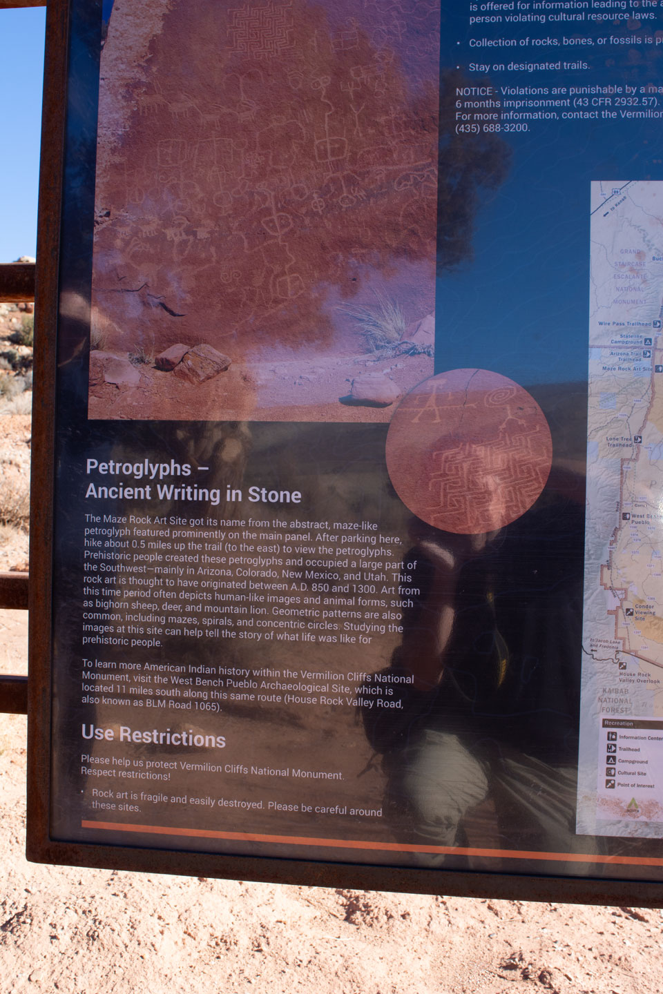 The Maze Rock petroglyphs are impressive, on a flat rock panel just east of House Rock Valley Road, in Vermilion Cliffs National Monument. They can be viewed at the end of a short hike in this scenic area.