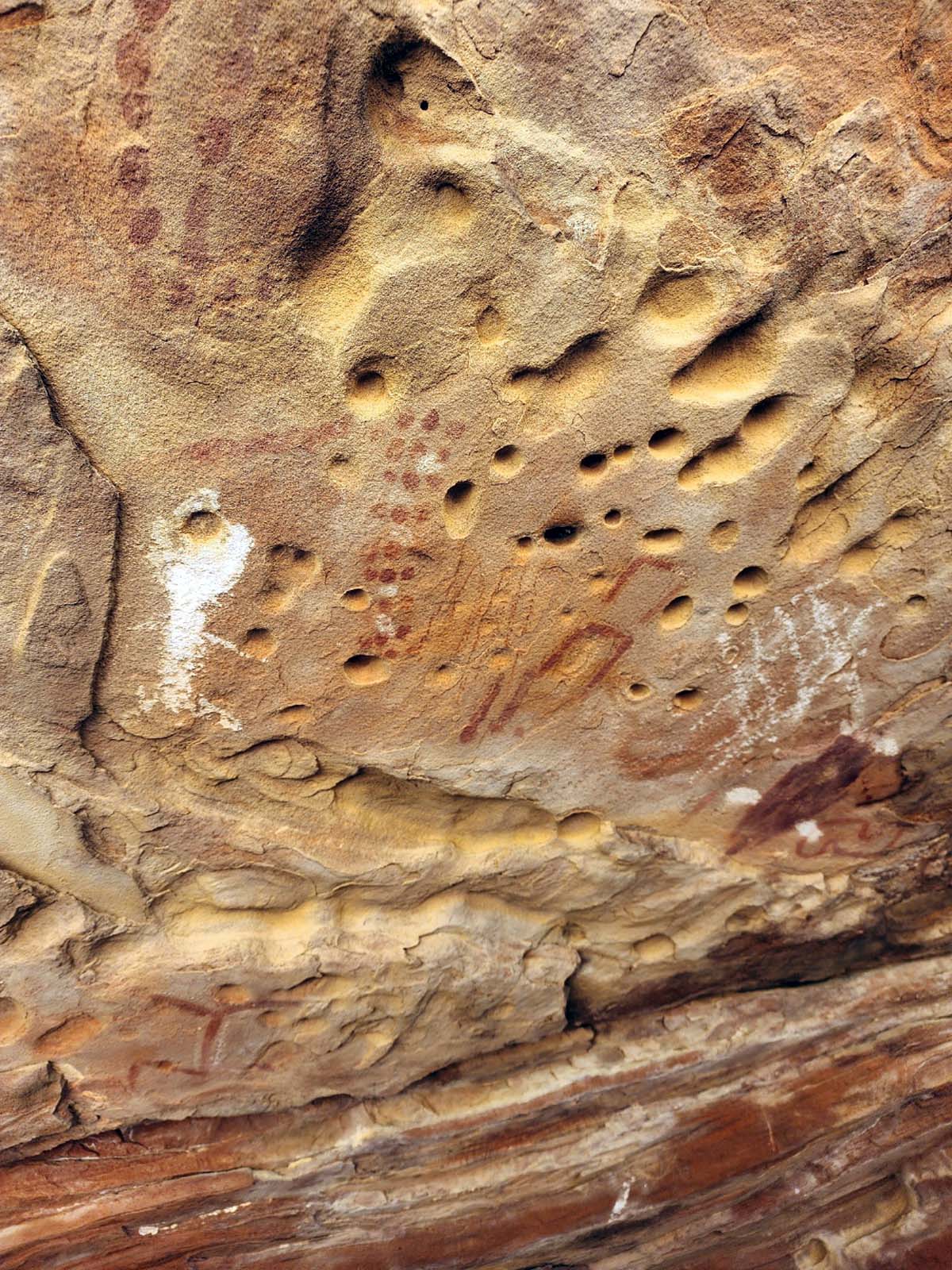 There is another, lesser-known cave in the area that also contains interesting rock art - both petroglyphs and pictographs, as our photos show.