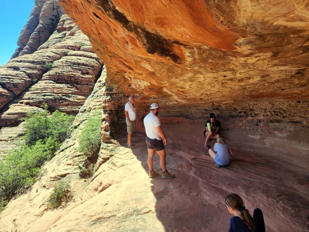 Both caves are located in an area of red rock on top of a mountain west of Gunlock. The access road is very rocky and sandy and we recommend only high-clearance four-wheel-drive vehicles attempt to drive it.