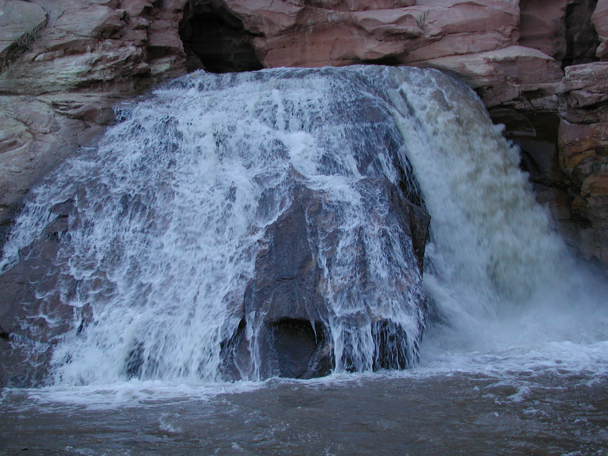 This waterfall was created when the Fremont River was re-routed to allow road construction in Capitol Reef National Park. It is located along Hwy 24 near the park's east entrance.