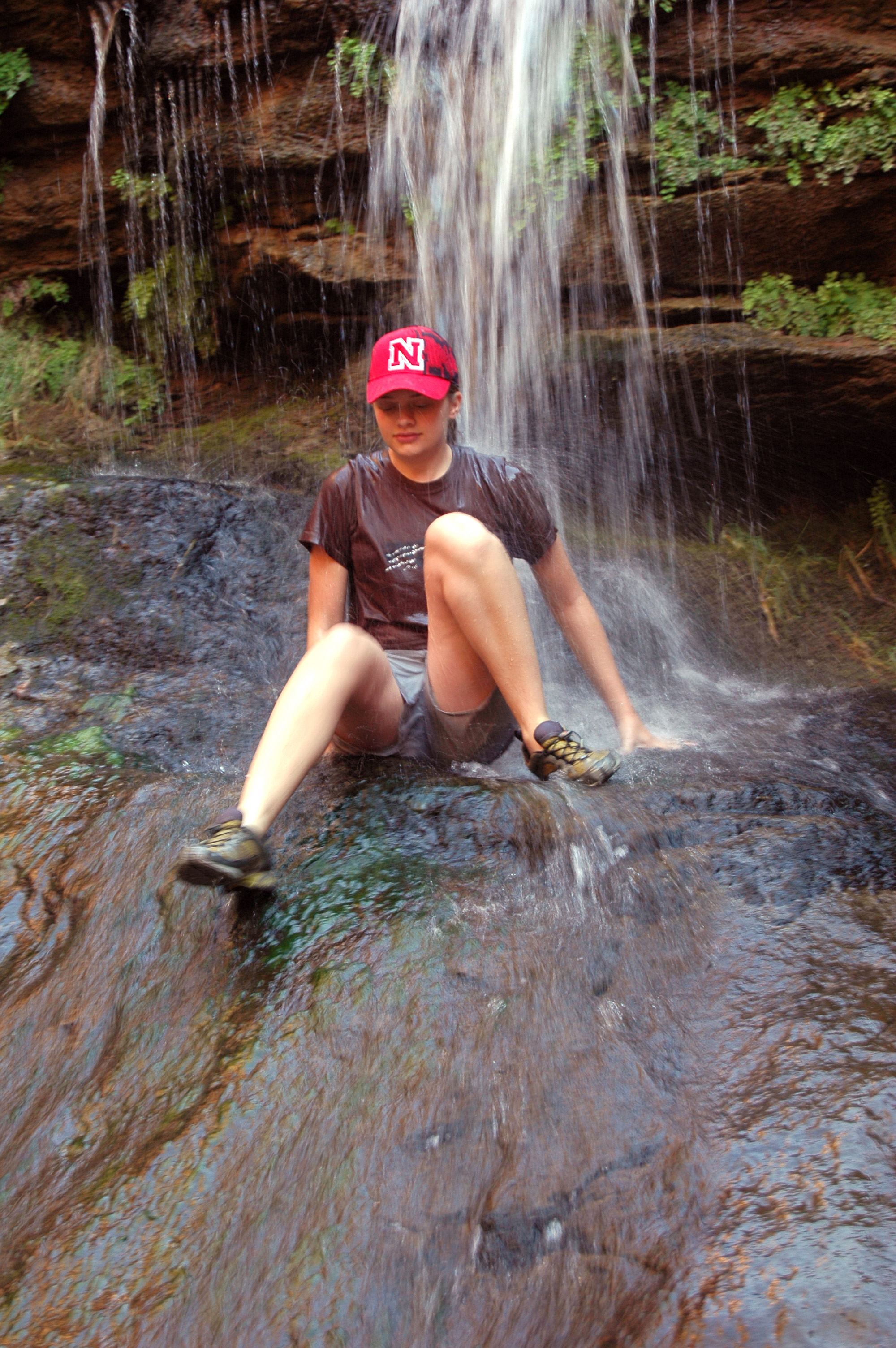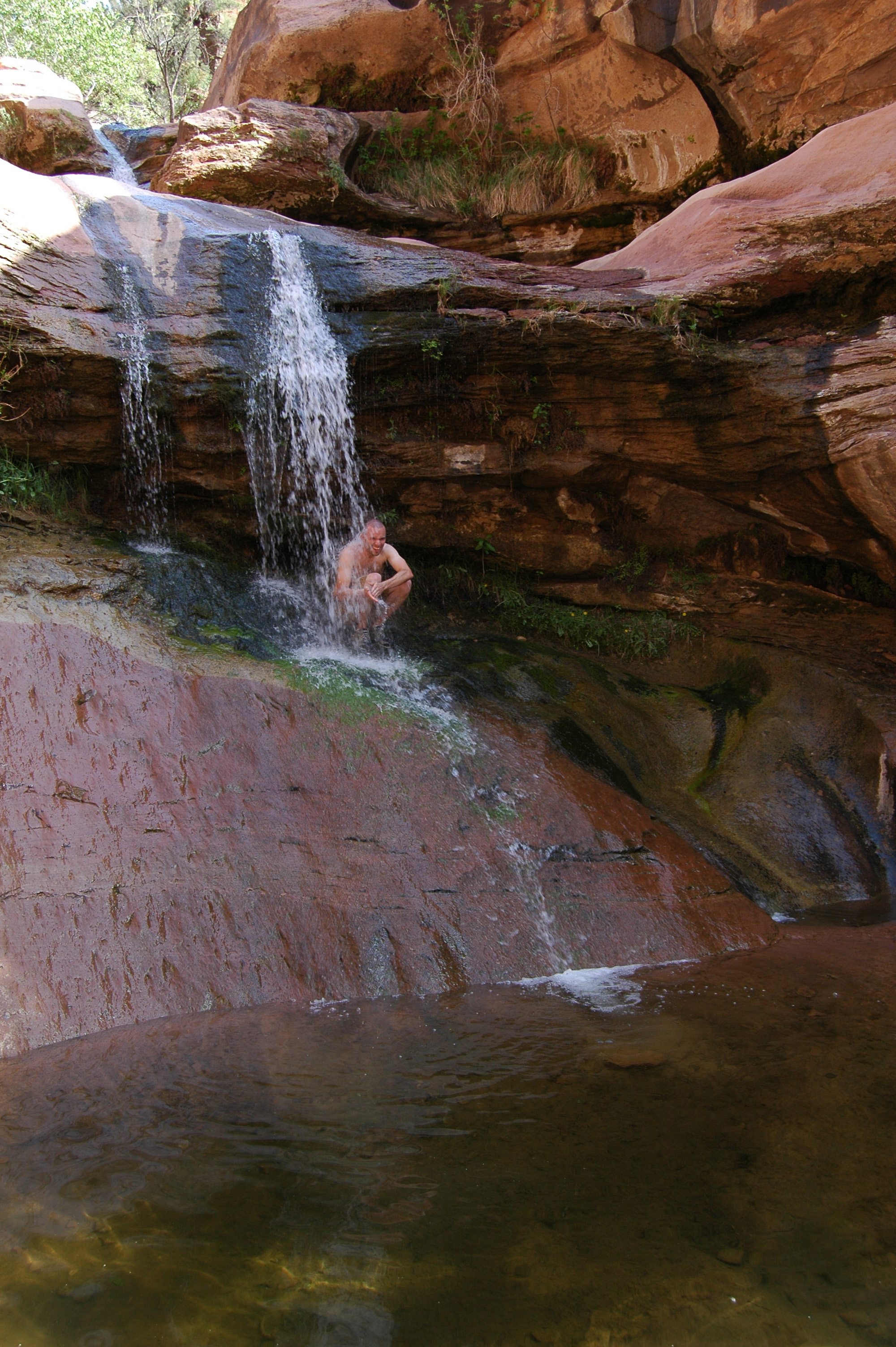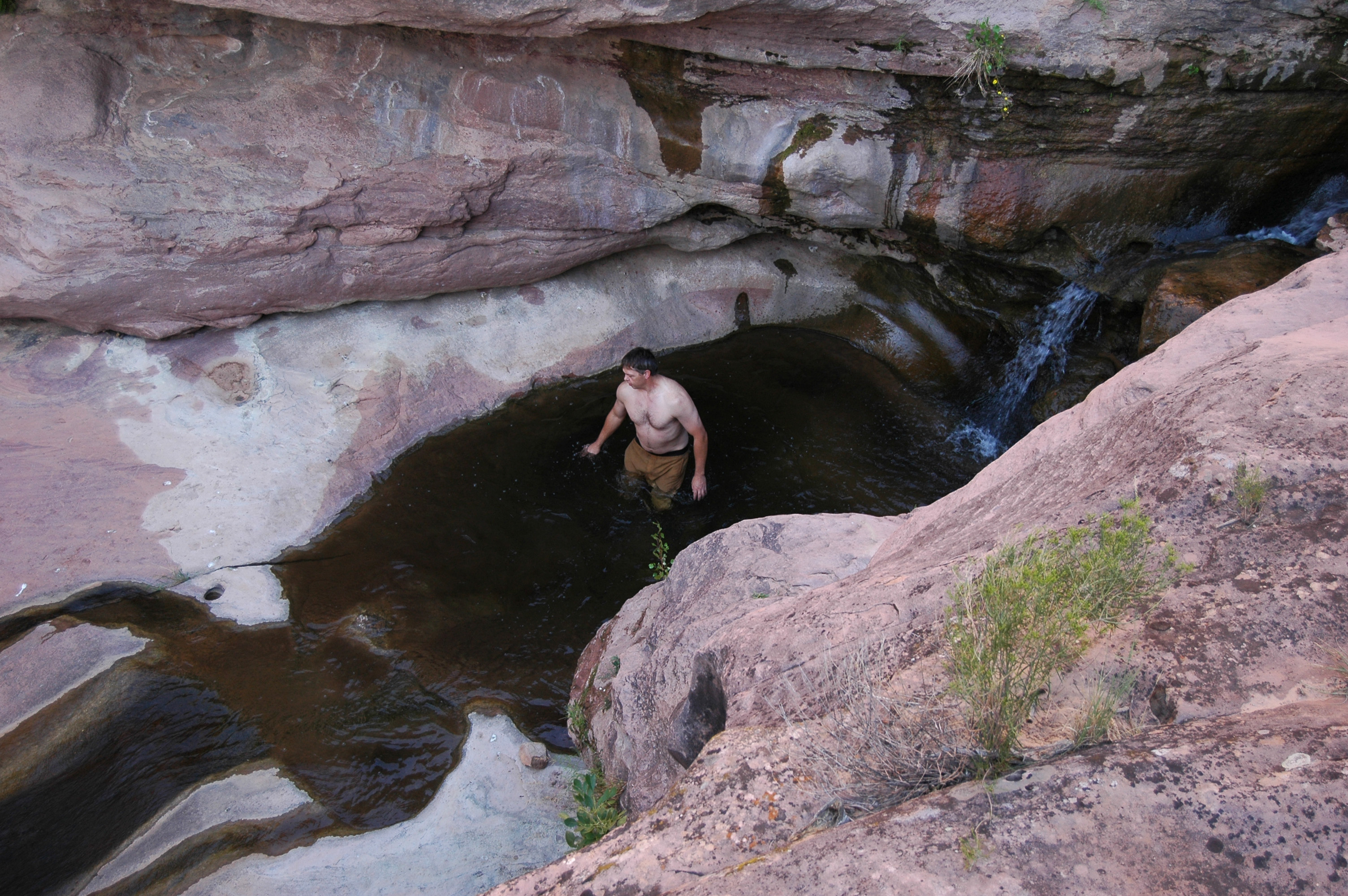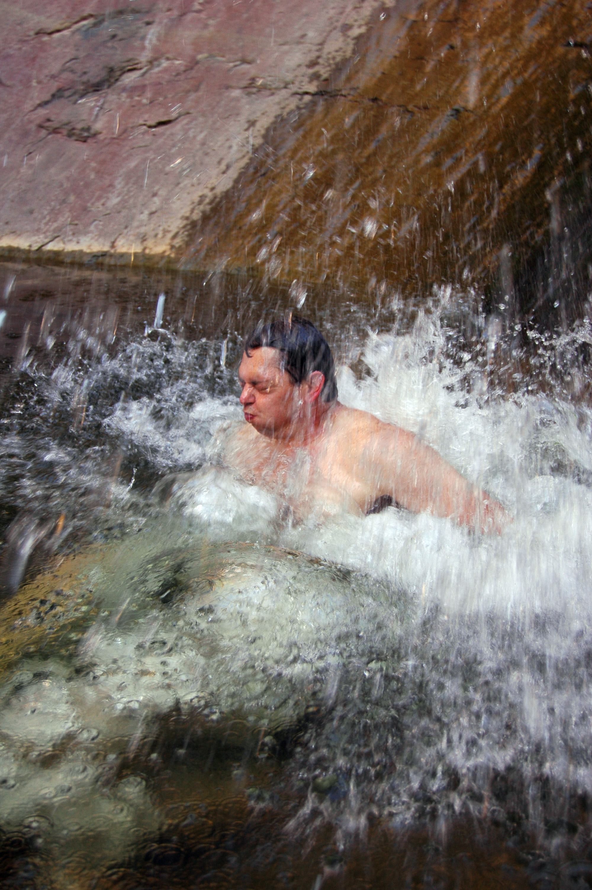 The pool under the waterfall is shallow - good for wading but not swimming. However, downstream there are deep pools where swimming is possible.