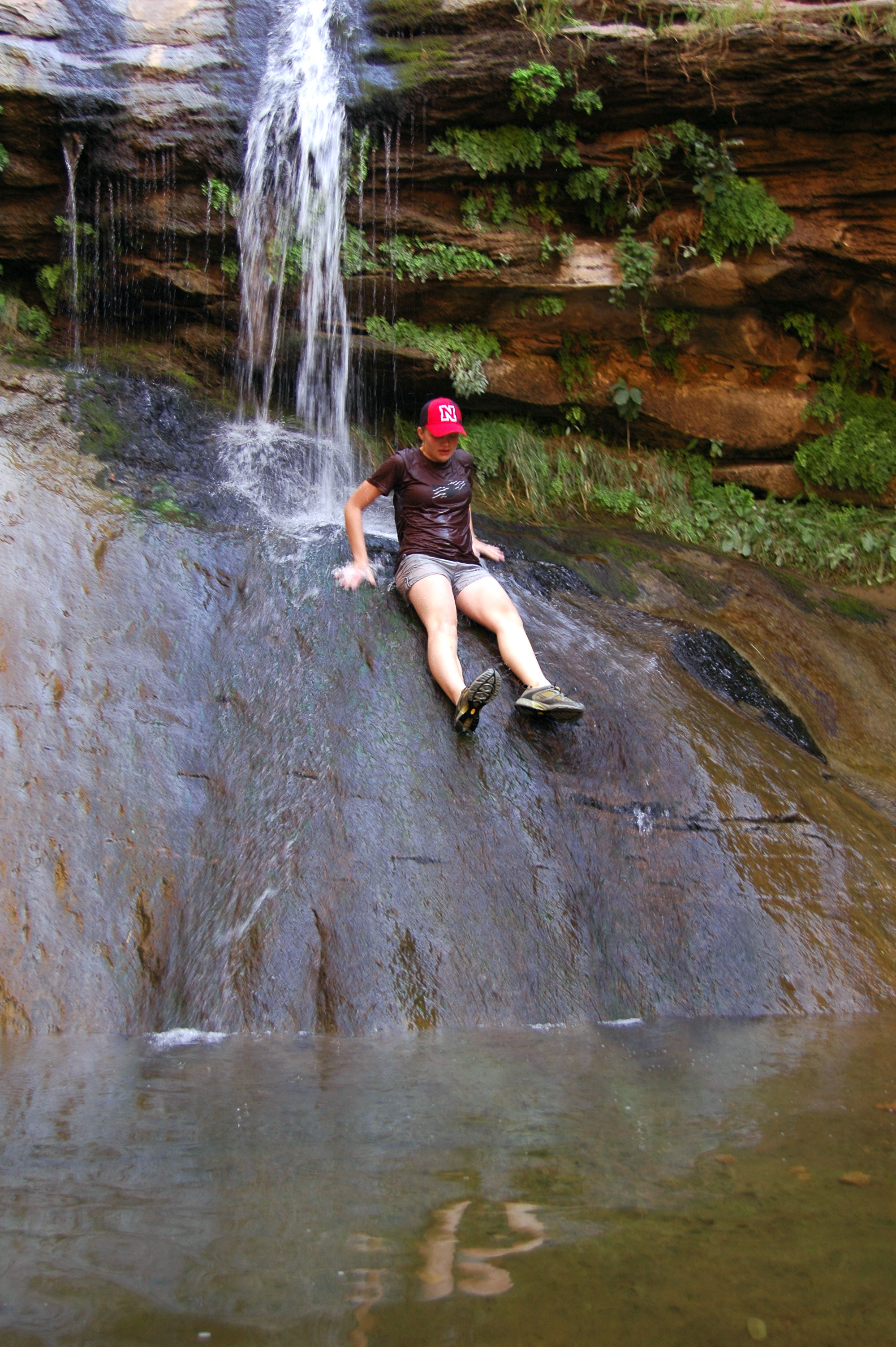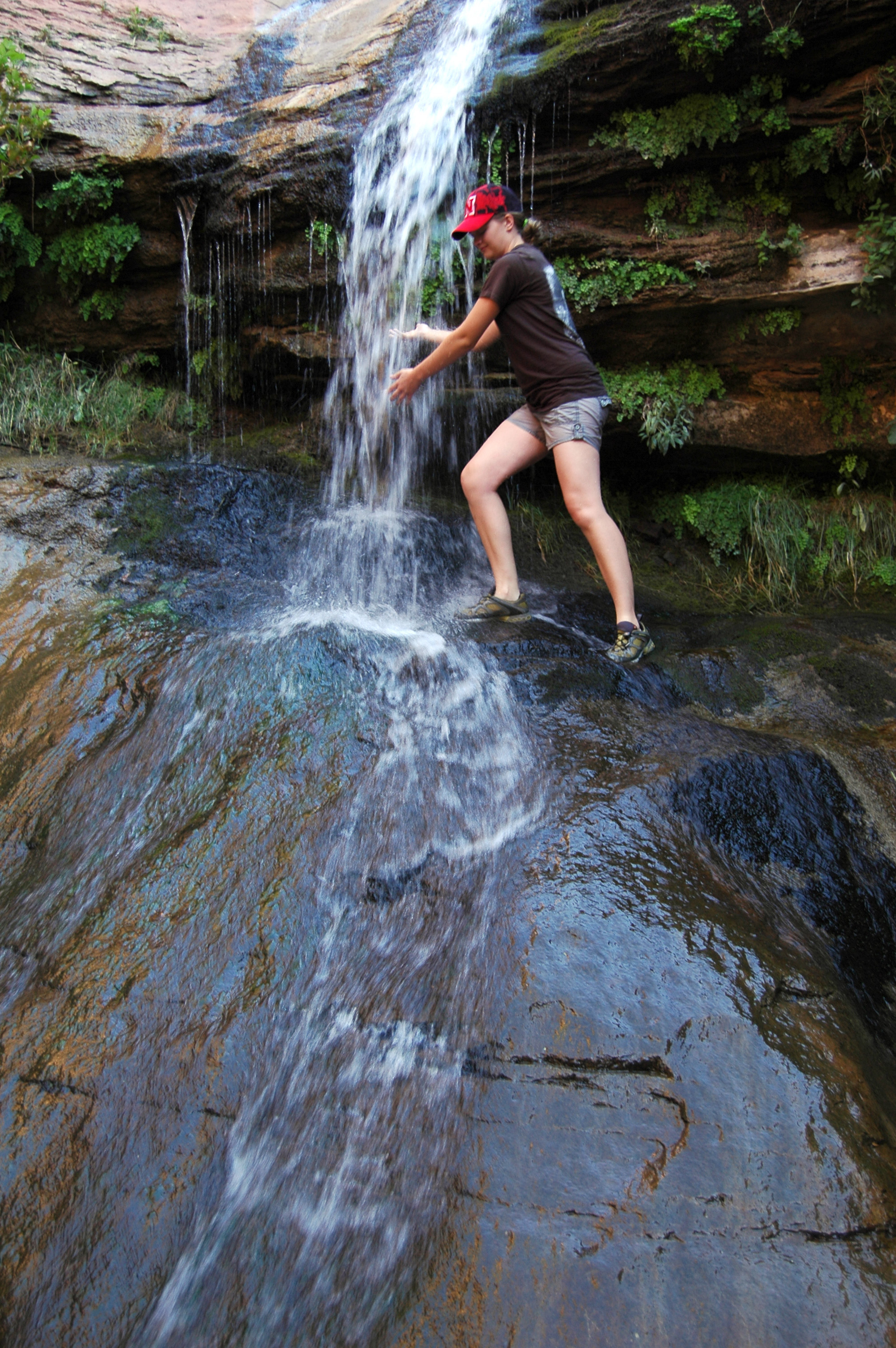 This is a small, scenic waterfall just off Hwy 9 in Zion National Park. Between Canyon Junction and the switchbacks, Hwy 9 crosses a bridge over Pine Creek. Park by the bridge and just follow the trail upstream. It is an easy, short hike suitable for families with young kids.