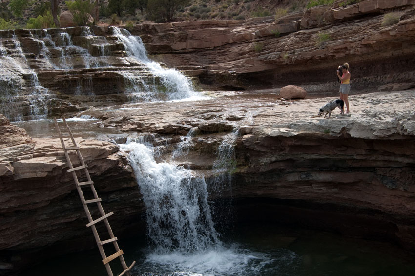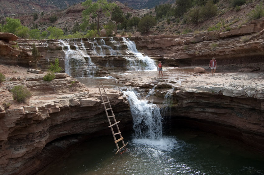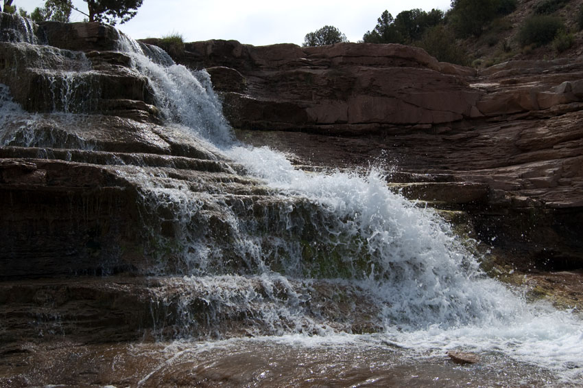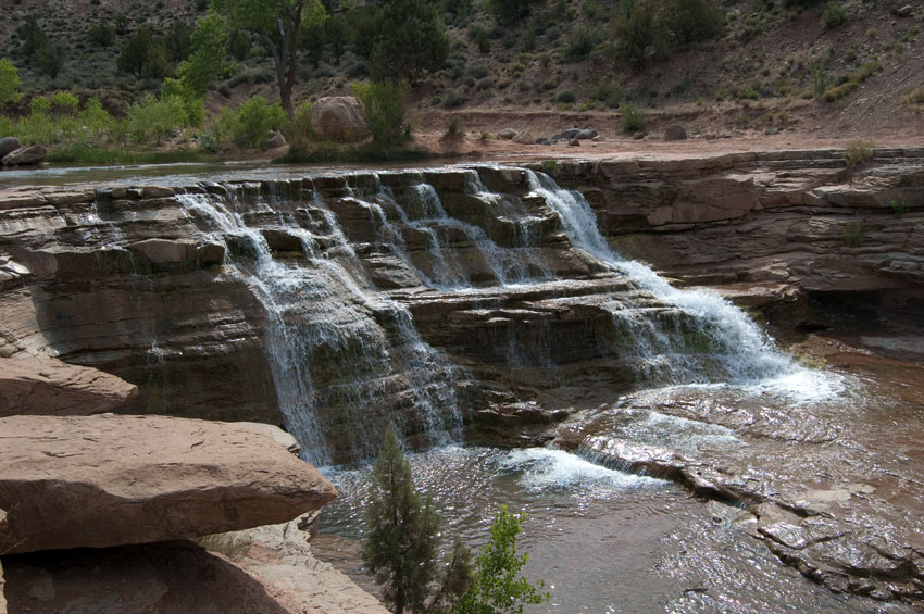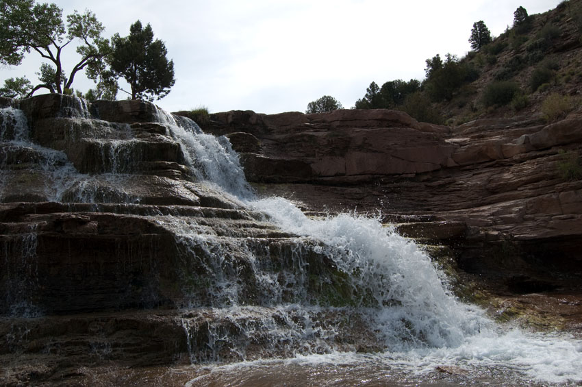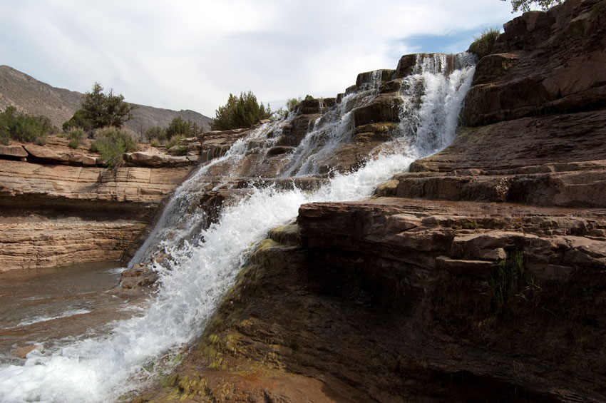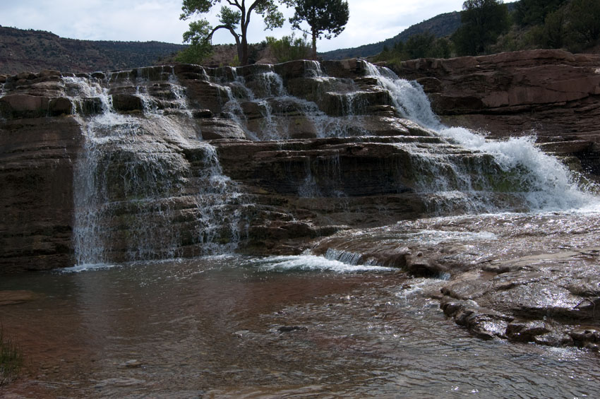 Toquerville Falls is a beautiful cascade, waterfall and swimming hole on La Verkin Creek east of the town of Toquerville. The access road is rough and rocky and a high clearance vehicle is needed. Four-wheel-drive is recommended.