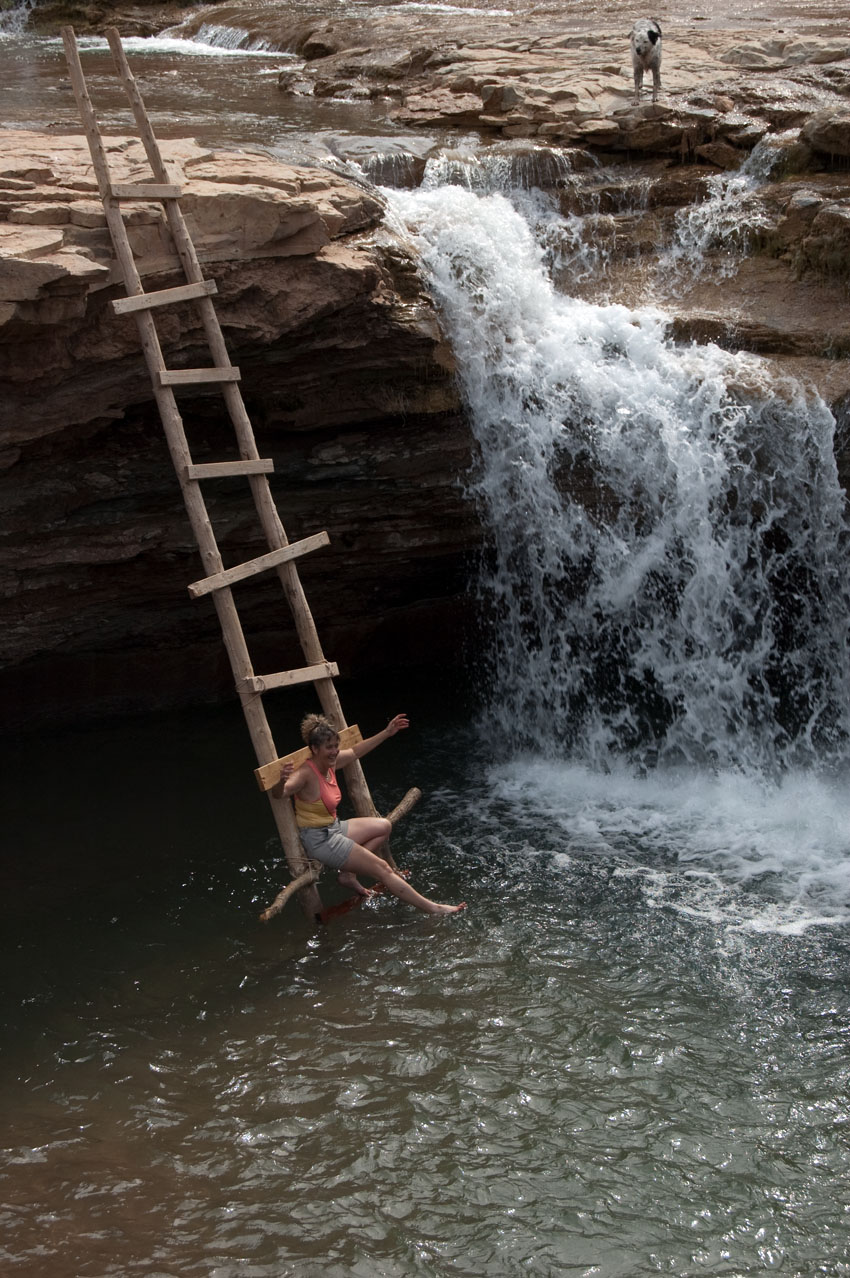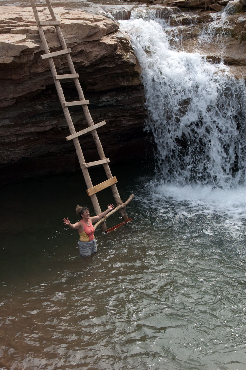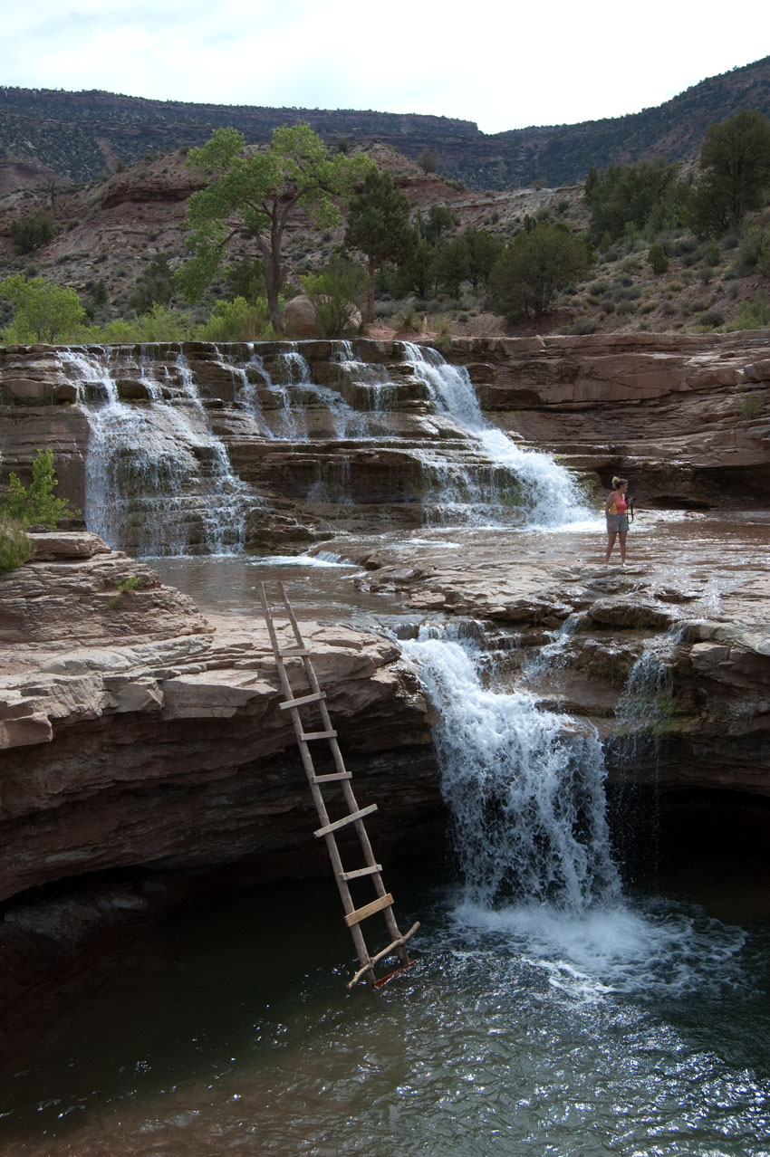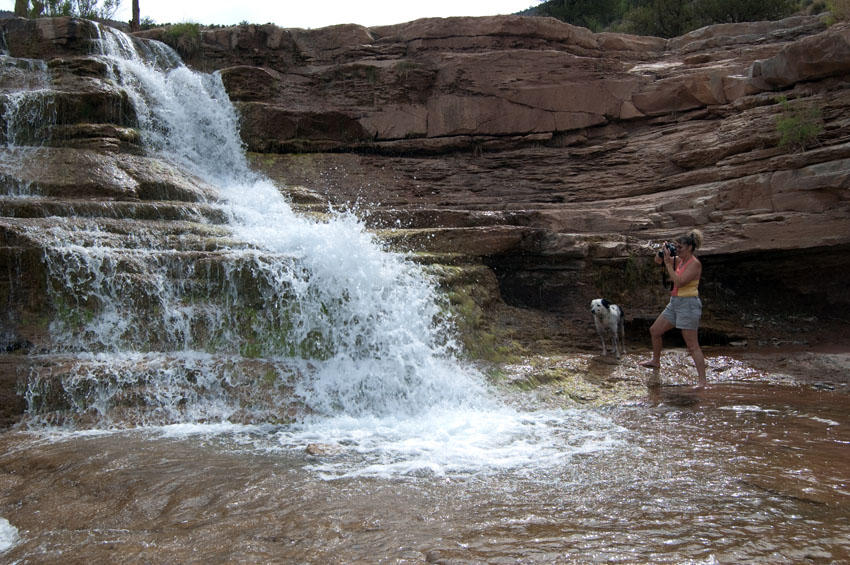 Toquerville Falls is a beautiful cascade, waterfall and swimming hole on La Verkin Creek east of the town of Toquerville. The access road is rough and rocky and a high clearance vehicle is needed. Four-wheel-drive is recommended.
