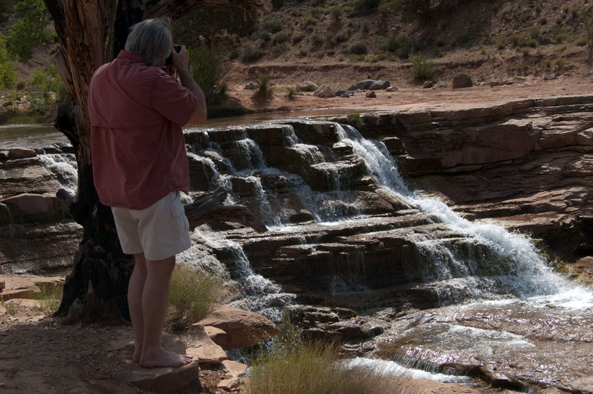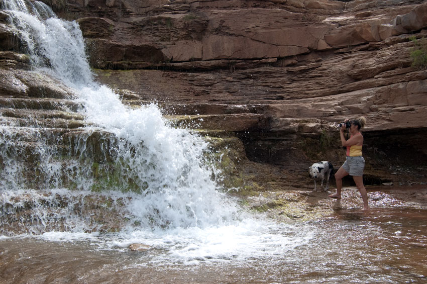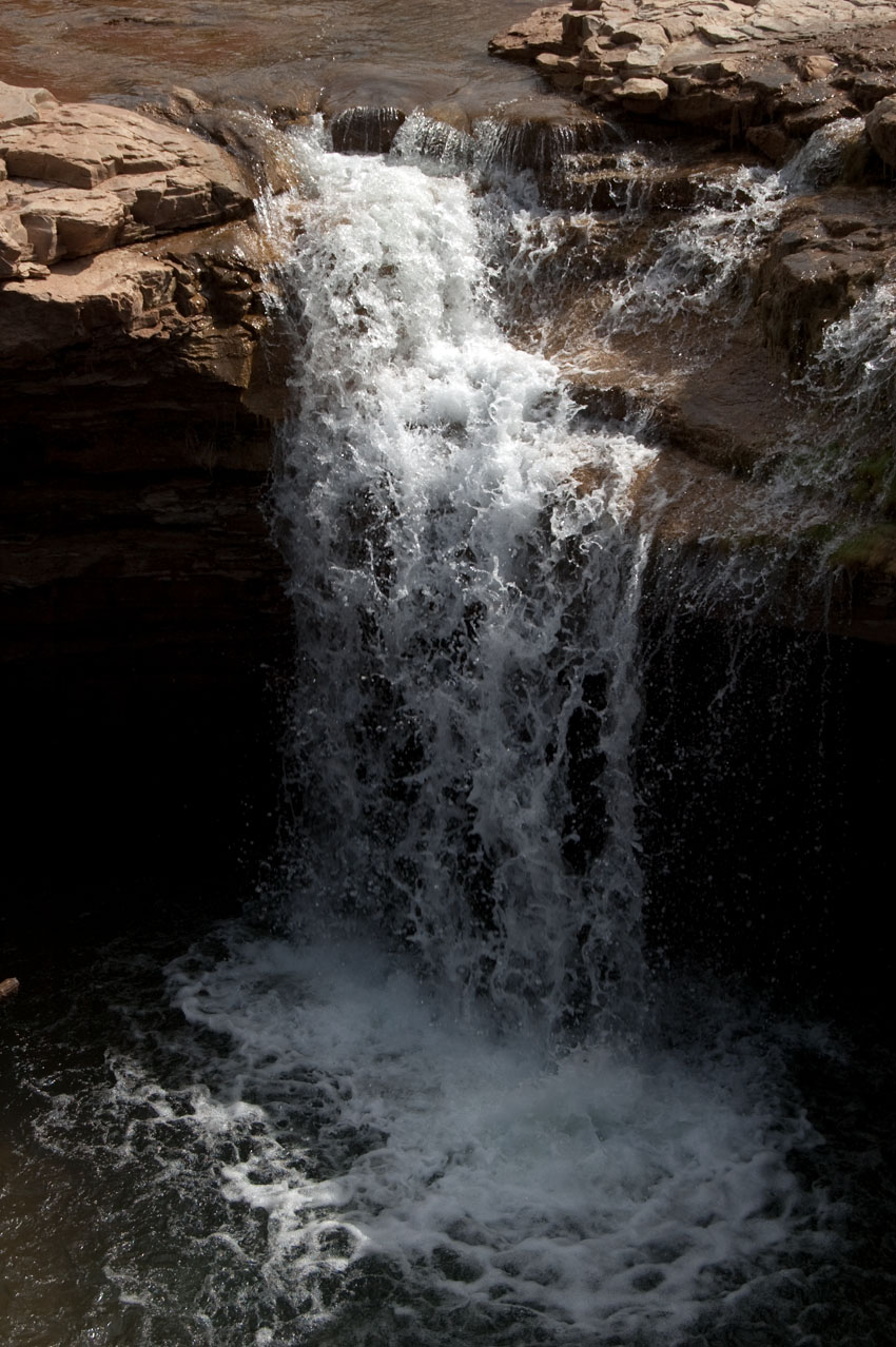 From the north edge of Toquerville, turn east onto Spring Drive and follow it northeast. It is paved on the lower end but soon becomes gravel and then rocky and rutty. The road follows Ash Creek for a short distance but then climbs over the ridge into what looks like desolate country. Just follow the main road until it drops down into a canyon and you arrive at the falls on La Verkin Creek.