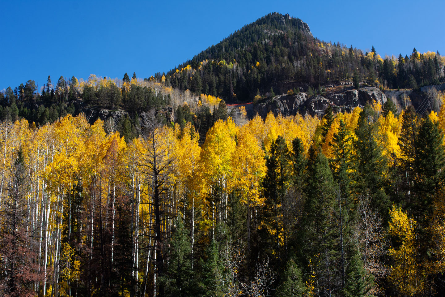 The Million Dollar Highway, between Ouray and Durango, is one of the great places in the US to see fall colors. The colors came on early this year and have been vibrant. The aspen trees were on fire during the first week of October. The area is popular and traffic was heavy, with slowdowns on the highway, but worth the trip. The backcountry was amazing.